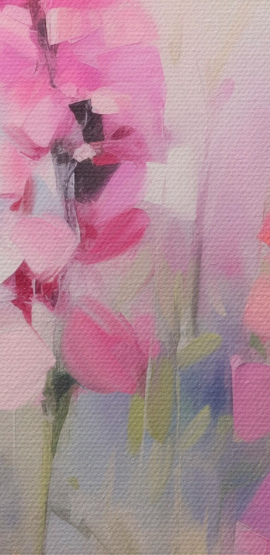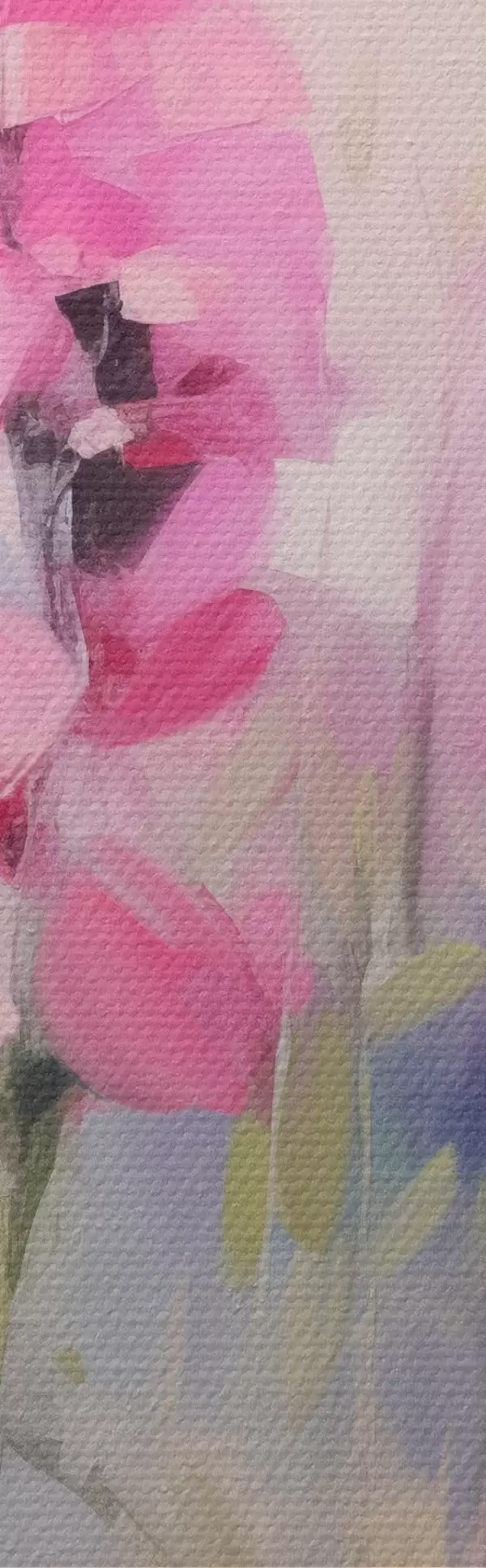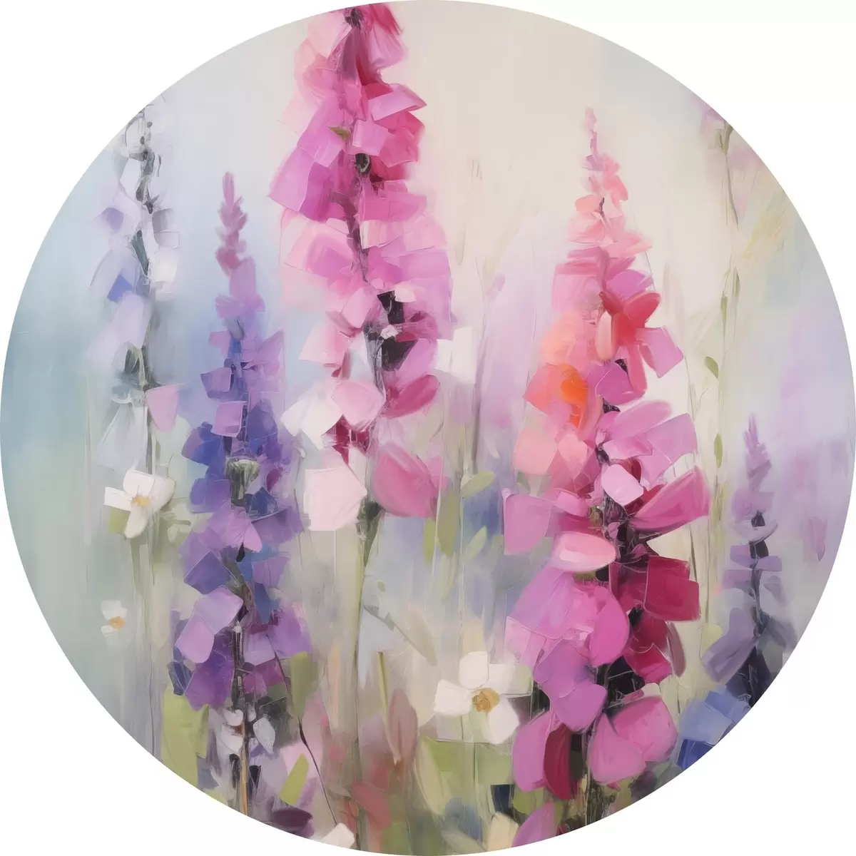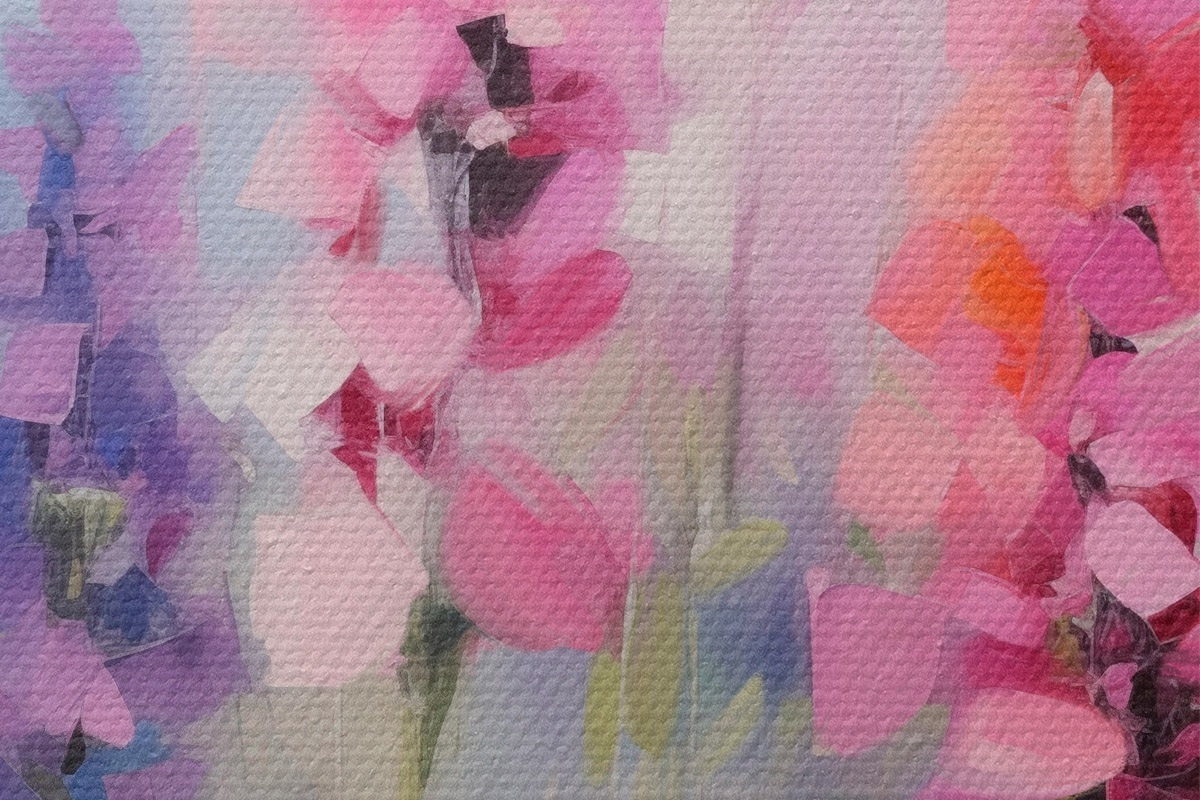 Nuotrauka Rožinės ir violetinės gėlės su baltomis saulėgrąžomis lauke, švelnūs teptuko potėpiai, pastelinės spalvos, impresionistinis stilius Nr r46279