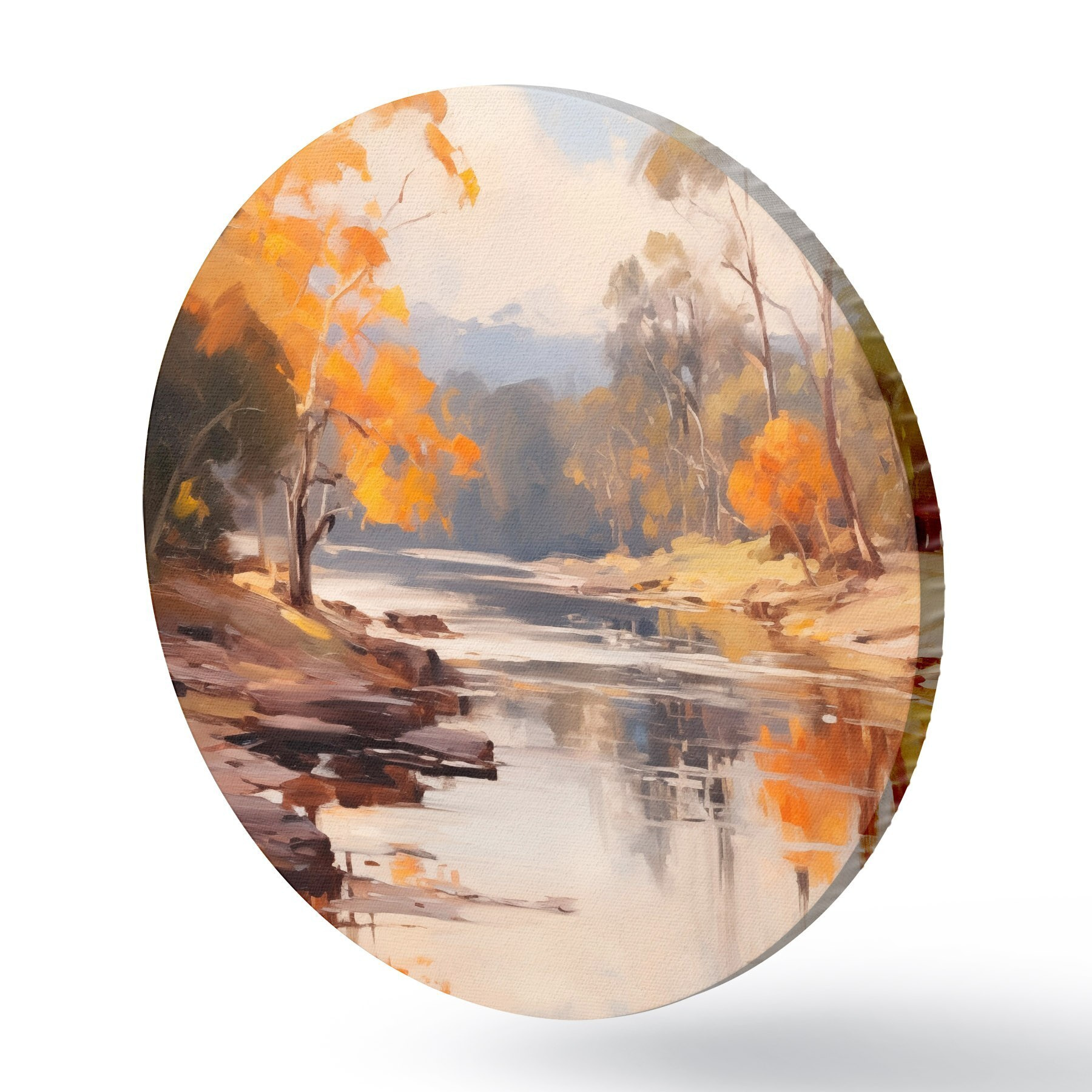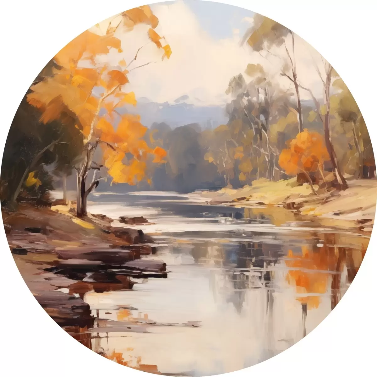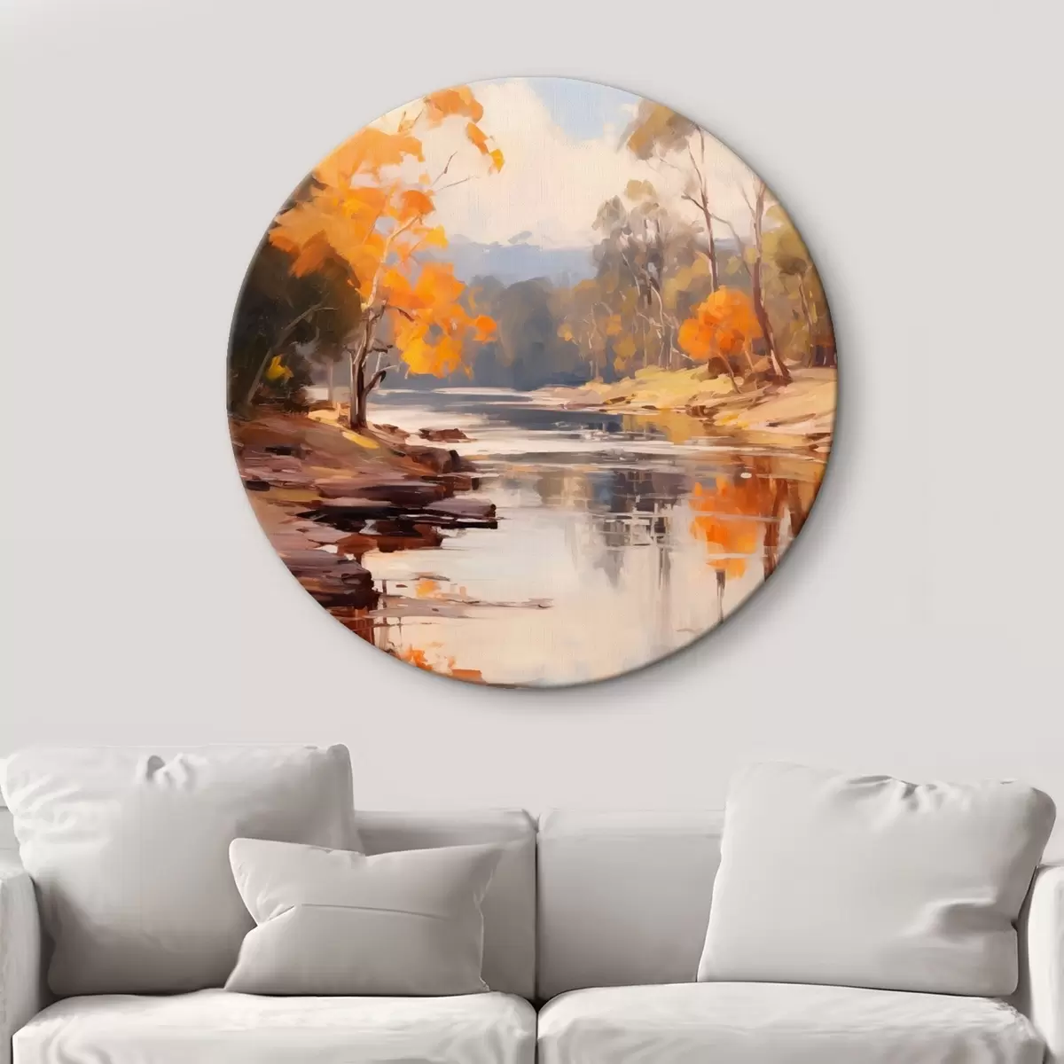 Nuotrauka Rudens peizažas, upė su medžiais krante, miškas fone, atspindžiai vandenyje Nr r46280