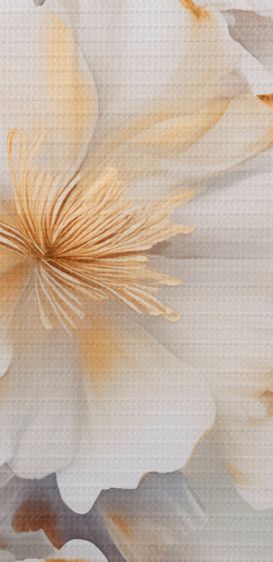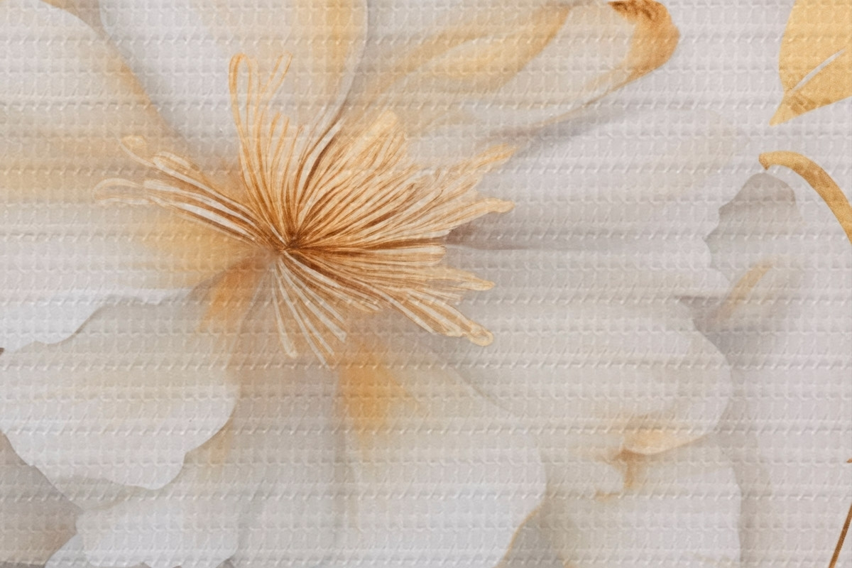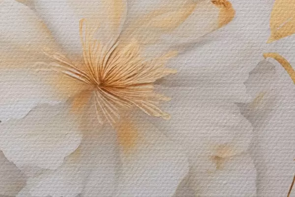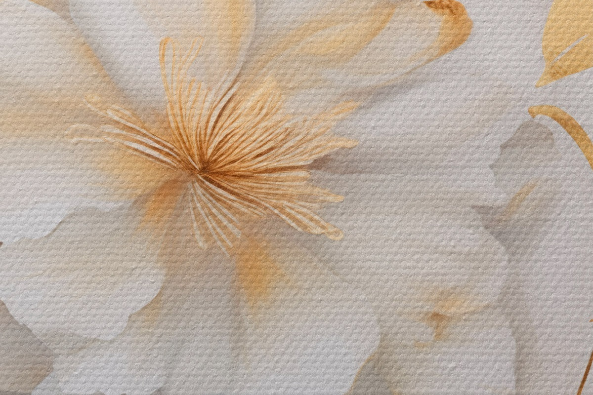 Nuotrauka Balta gėlė su geltonomis detalėmis, žiedlapiai su subtiliais šešėliais, šviesus fonas su subtiliu marmuro efektu Nr r46292
