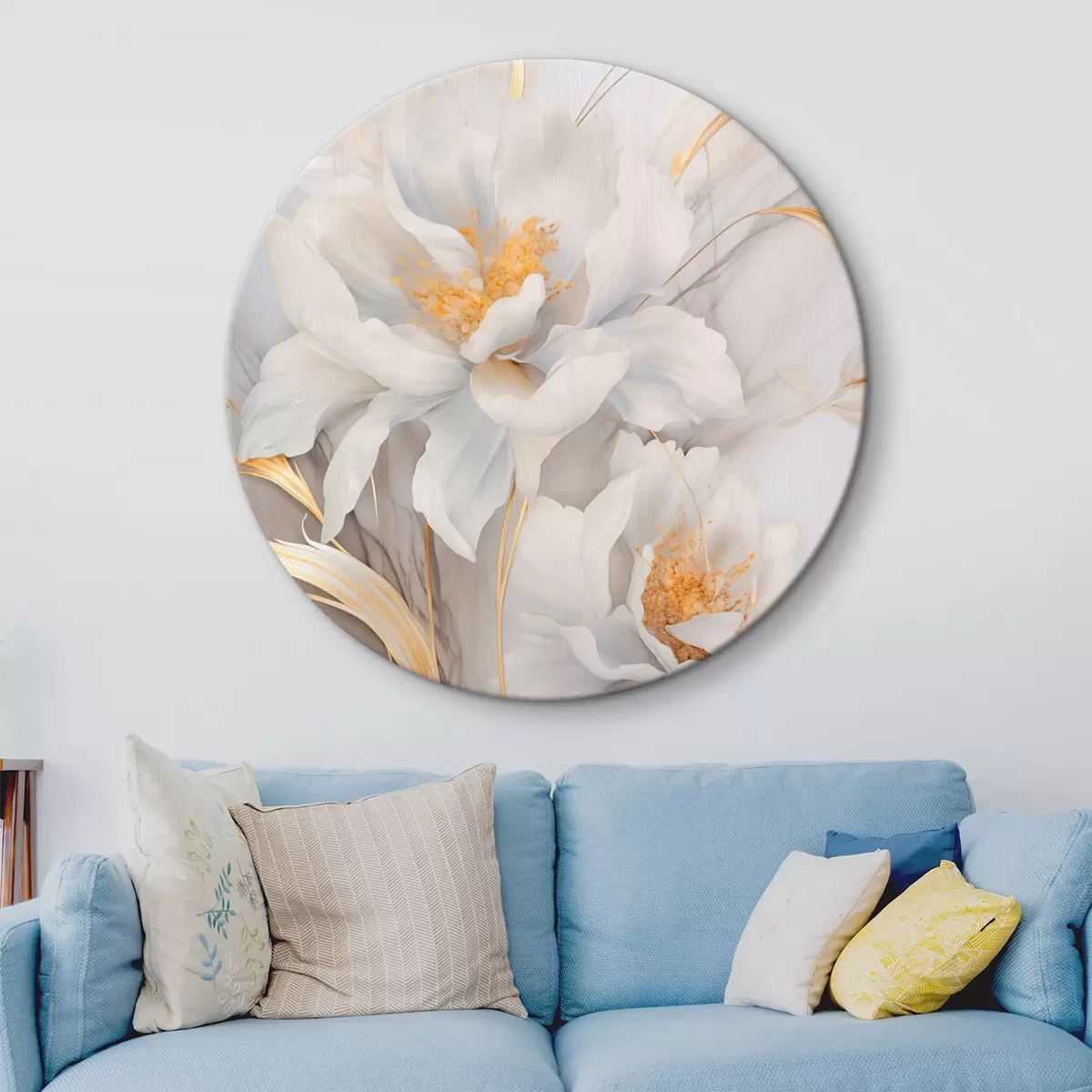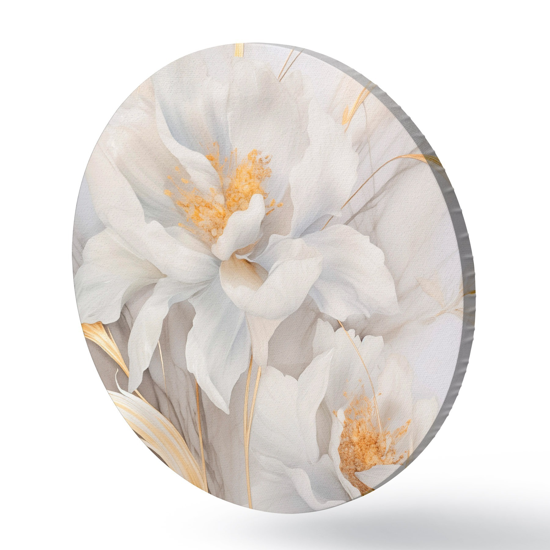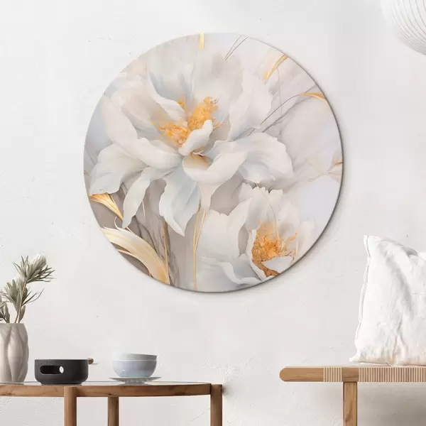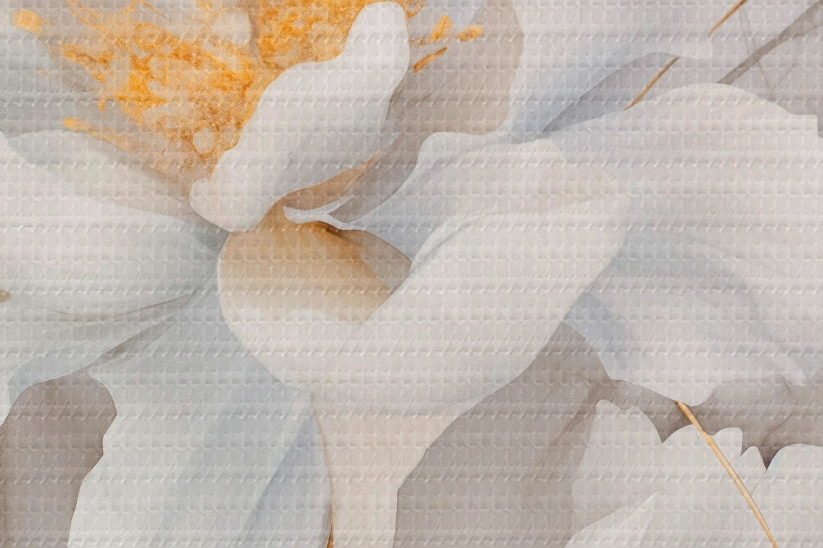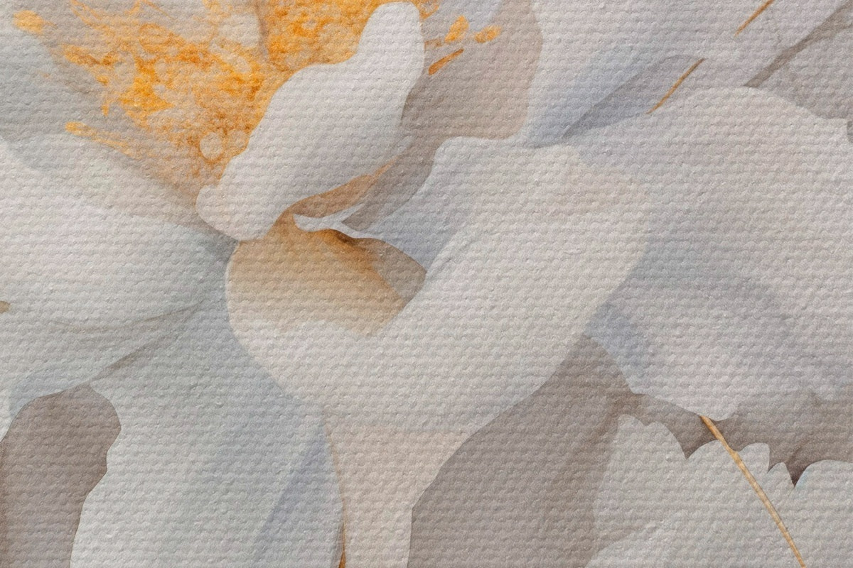 Nuotrauka Balta gėlė su geltonomis piestelėmis ir stiebais, subtiliais žiedlapiais, elegantiška kompozicija, neutralus fonas Nr r46293