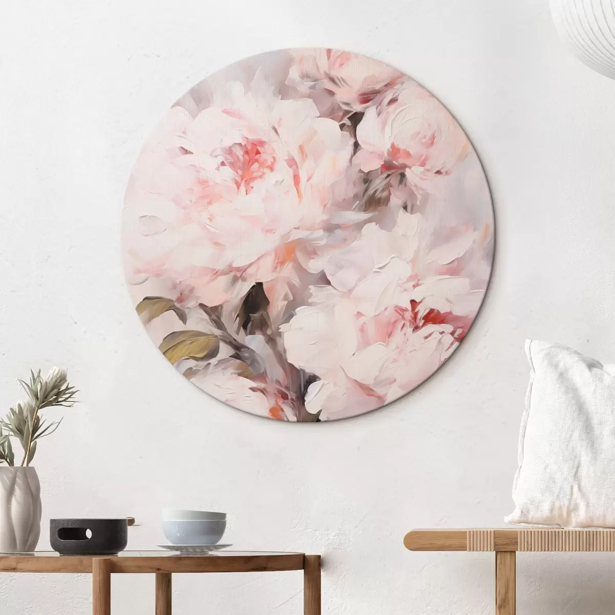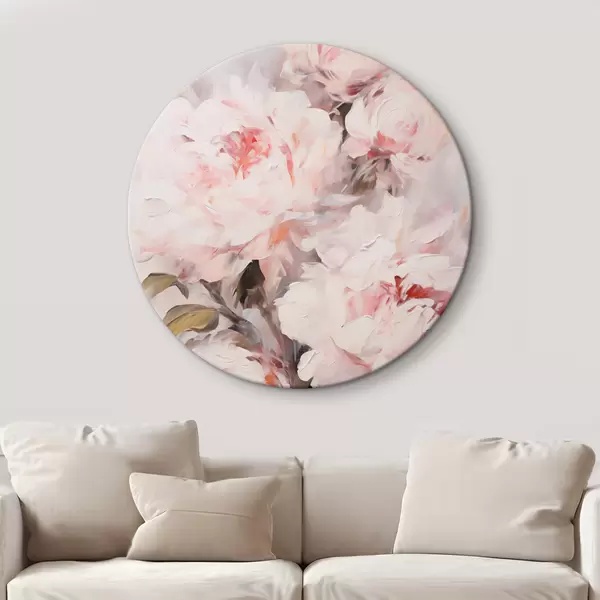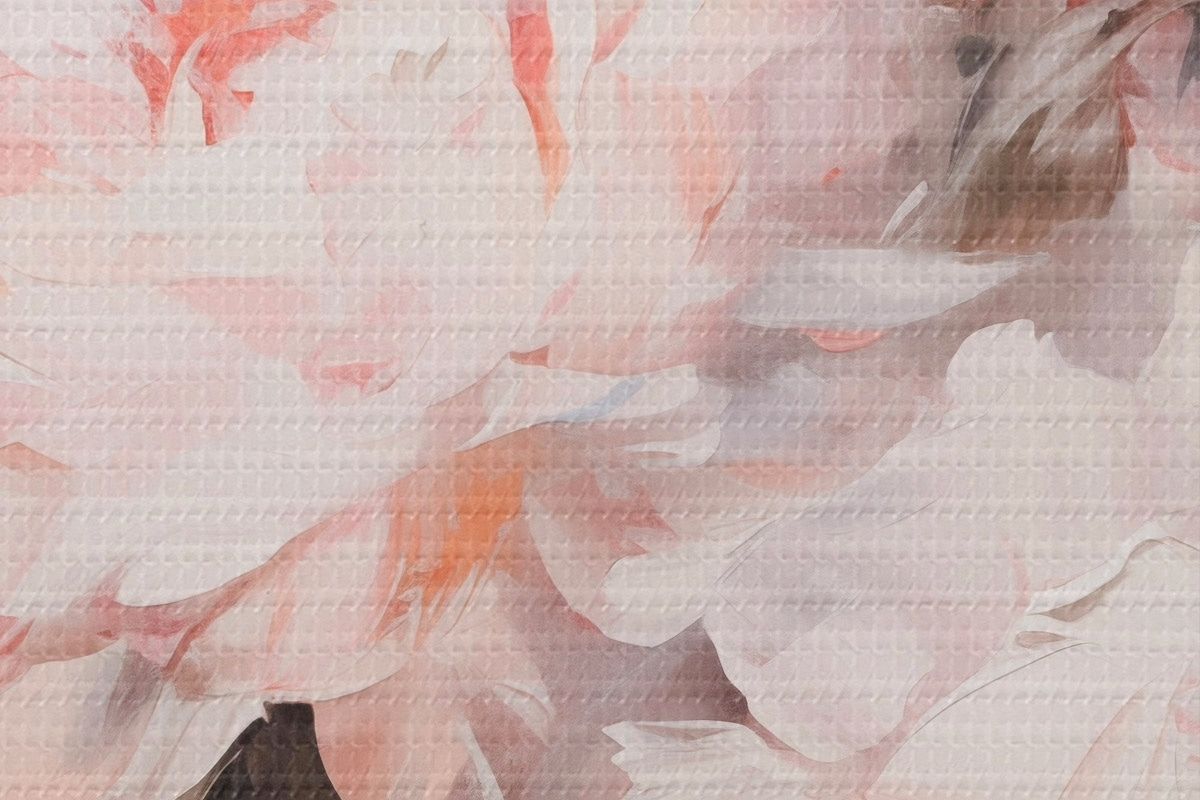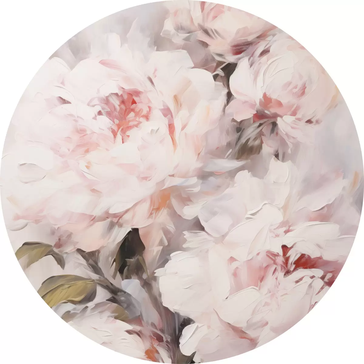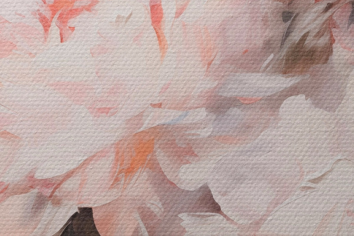 Nuotrauka Šviesiai rožinių bijūnų puokštė su žaliais lapais, švelniais potėpiais, pastelinėmis spalvomis, šviesiu fonu Nr r46294