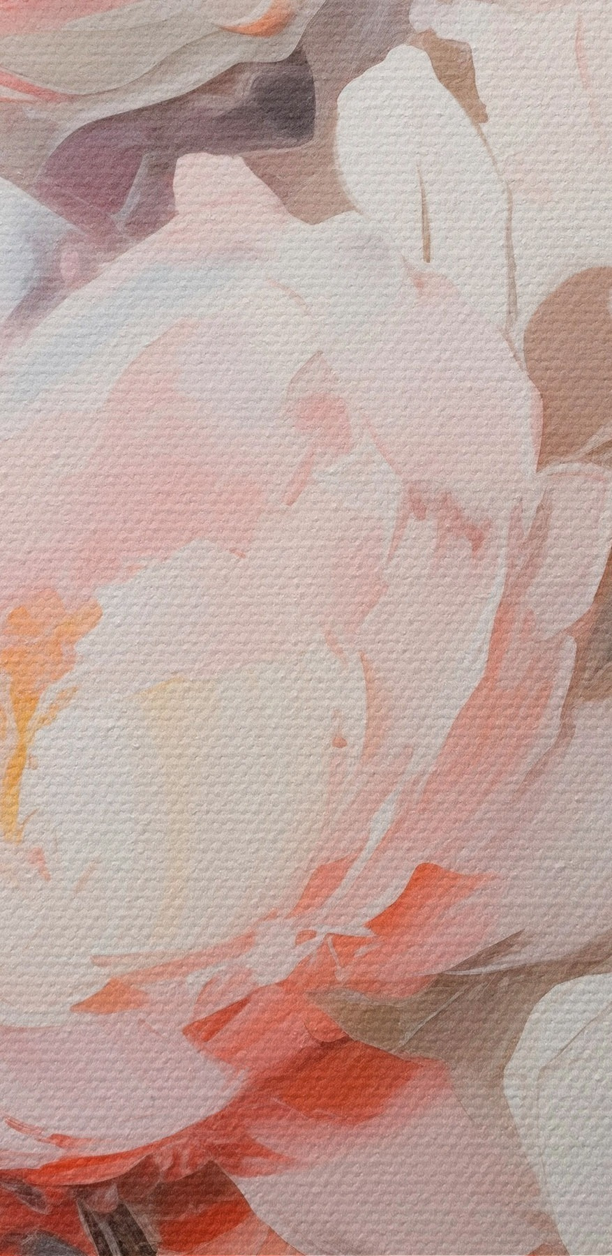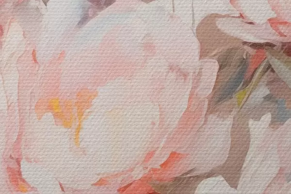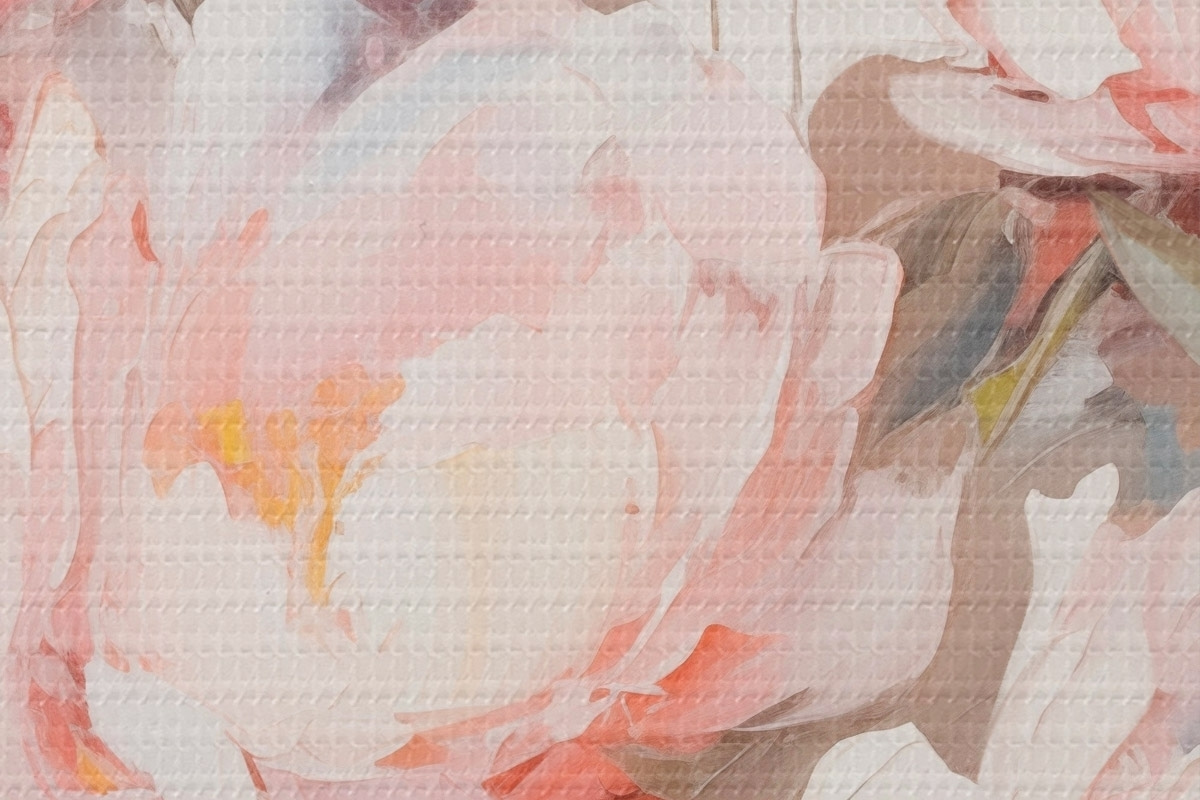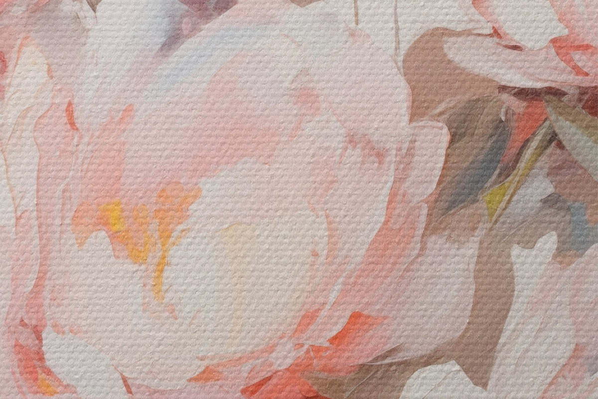 Nuotrauka Rožinių ir baltų bijūnų puokštė stikliniame vazone, švelnūs potėpiai, pastelinės spalvos, neutralus fonas Nr r46295