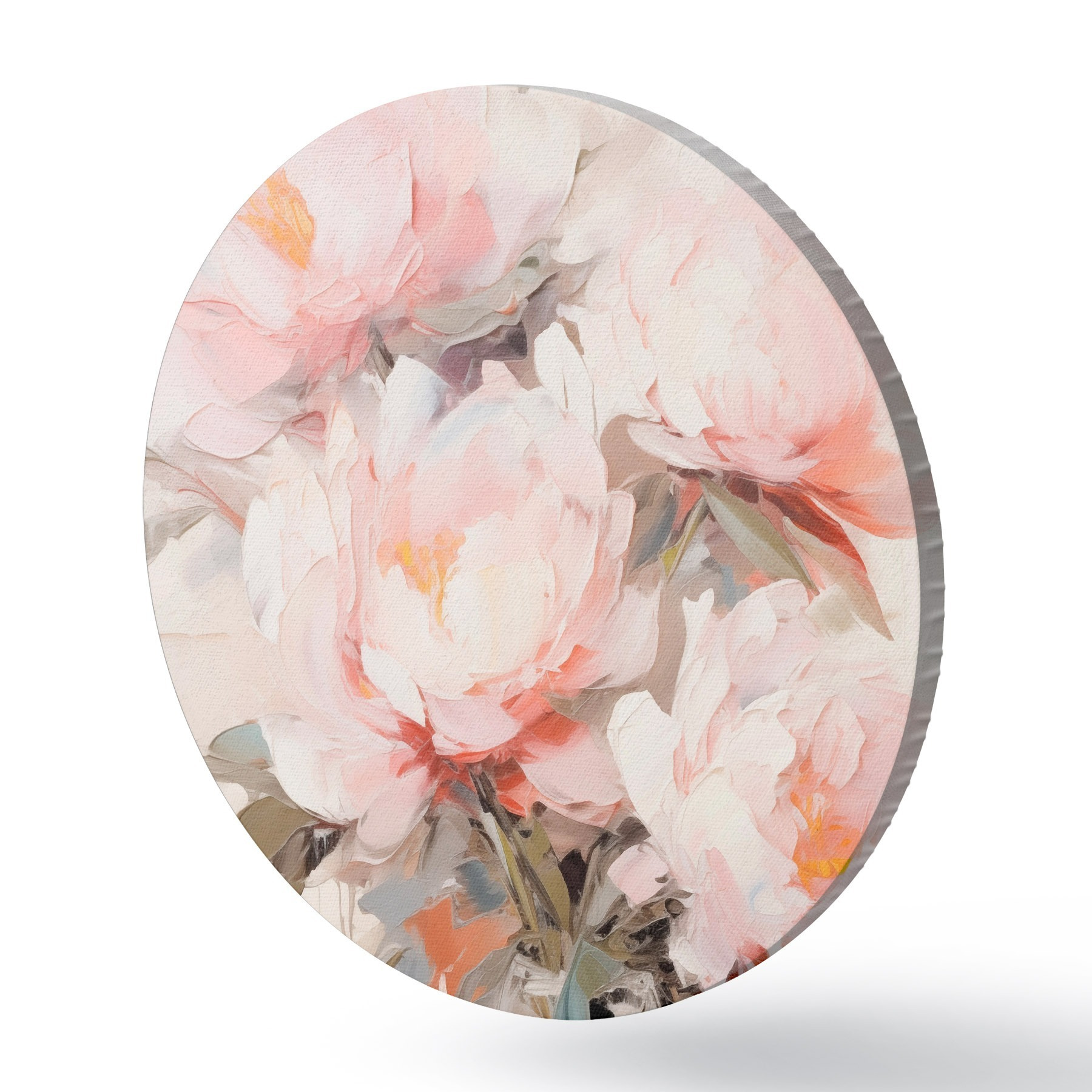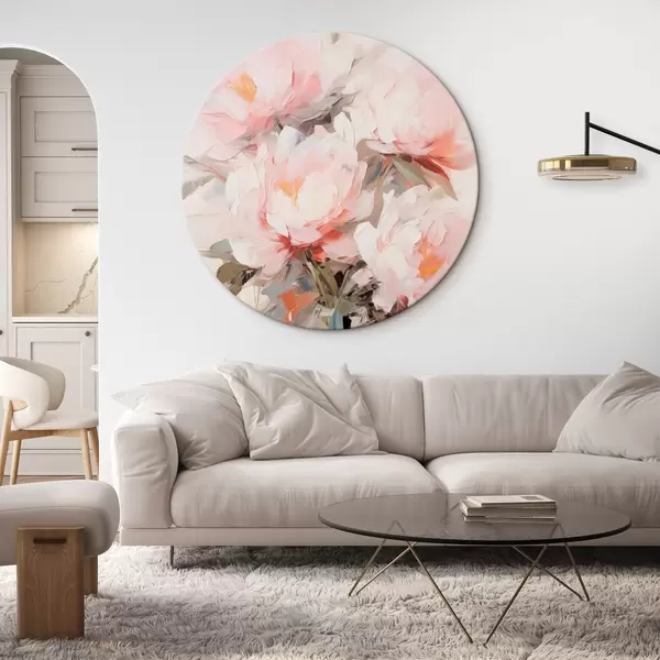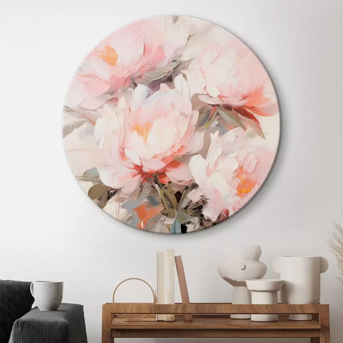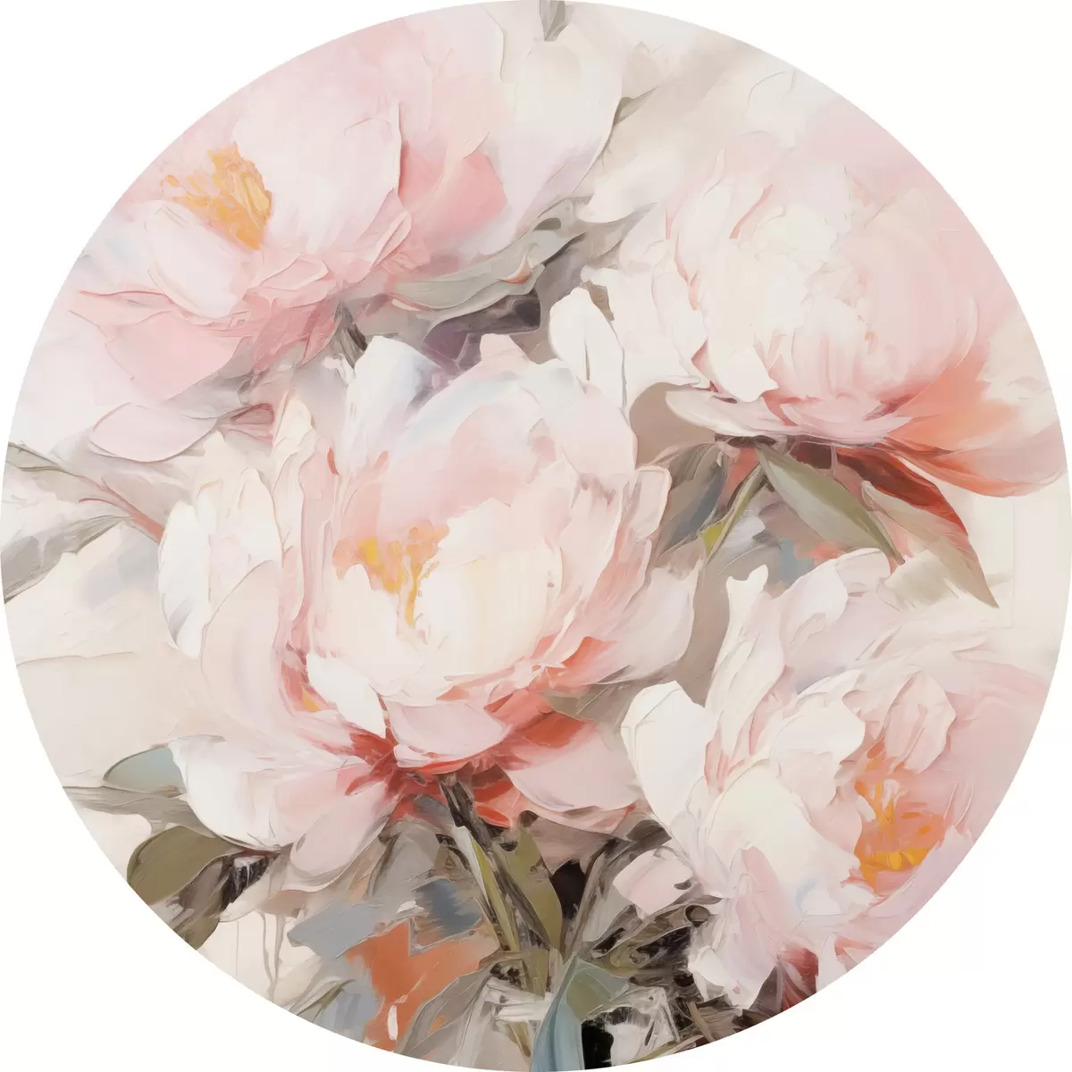 Nuotrauka Rožinių ir baltų bijūnų puokštė stikliniame vazone, švelnūs potėpiai, pastelinės spalvos, neutralus fonas Nr r46295
