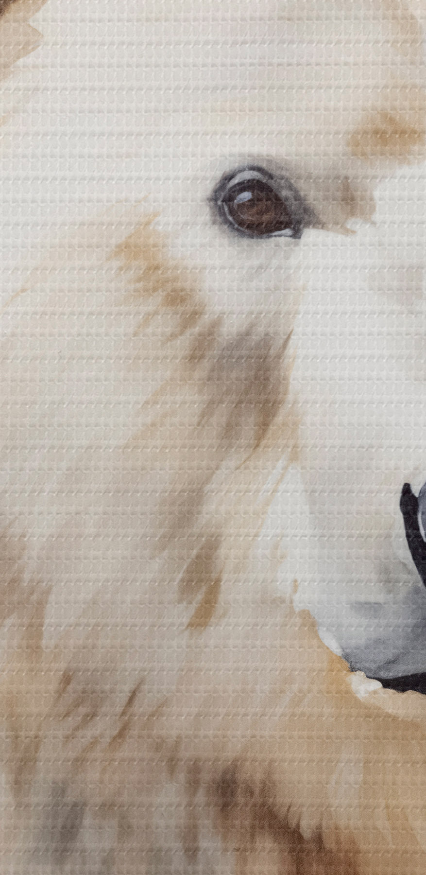 Galima užsakyti trijų rūšių medžiagą: "Economic Canvas" - tanki ir patvari medžiaga skaitmeninei spaudai, identiška dailininko drobės medžiagai, vandeniui atsparus paviršius, tikroviškas detalių atkūrimas, vidutinio grūdėtumo medžiaga. Premium Canvas - tekstūra primena dailininko drobę (susipynę smulkūs siūlai). Minkštas, detalus vaizdo atkūrimas ant matinio paviršiaus. Eco-Premium - aukštos kokybės 100 % medvilninis audinys. Dėl natūralių medvilnės pluoštų medžiaga yra patvari ir atspari nusidėvėjimui. Puikus spalvų atkūrimas ir detalumas.