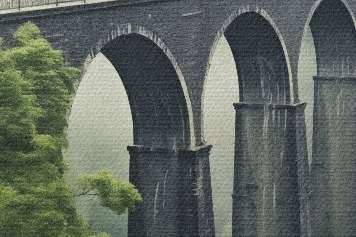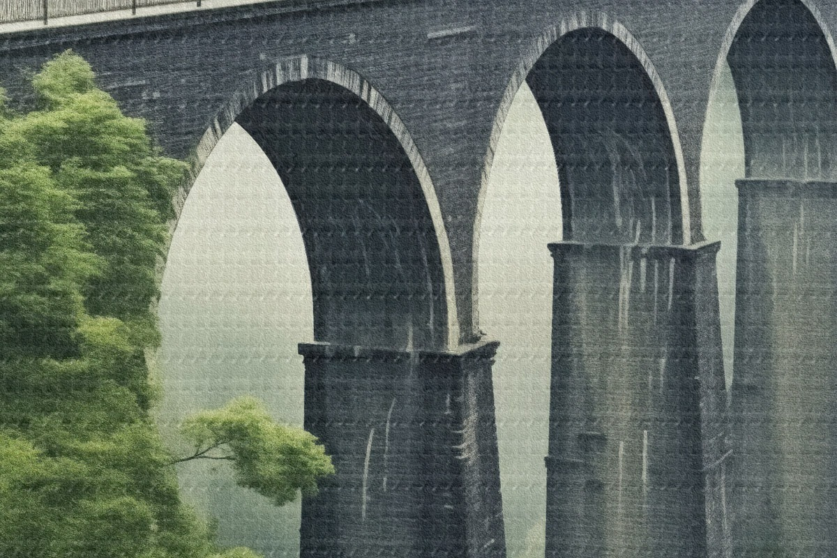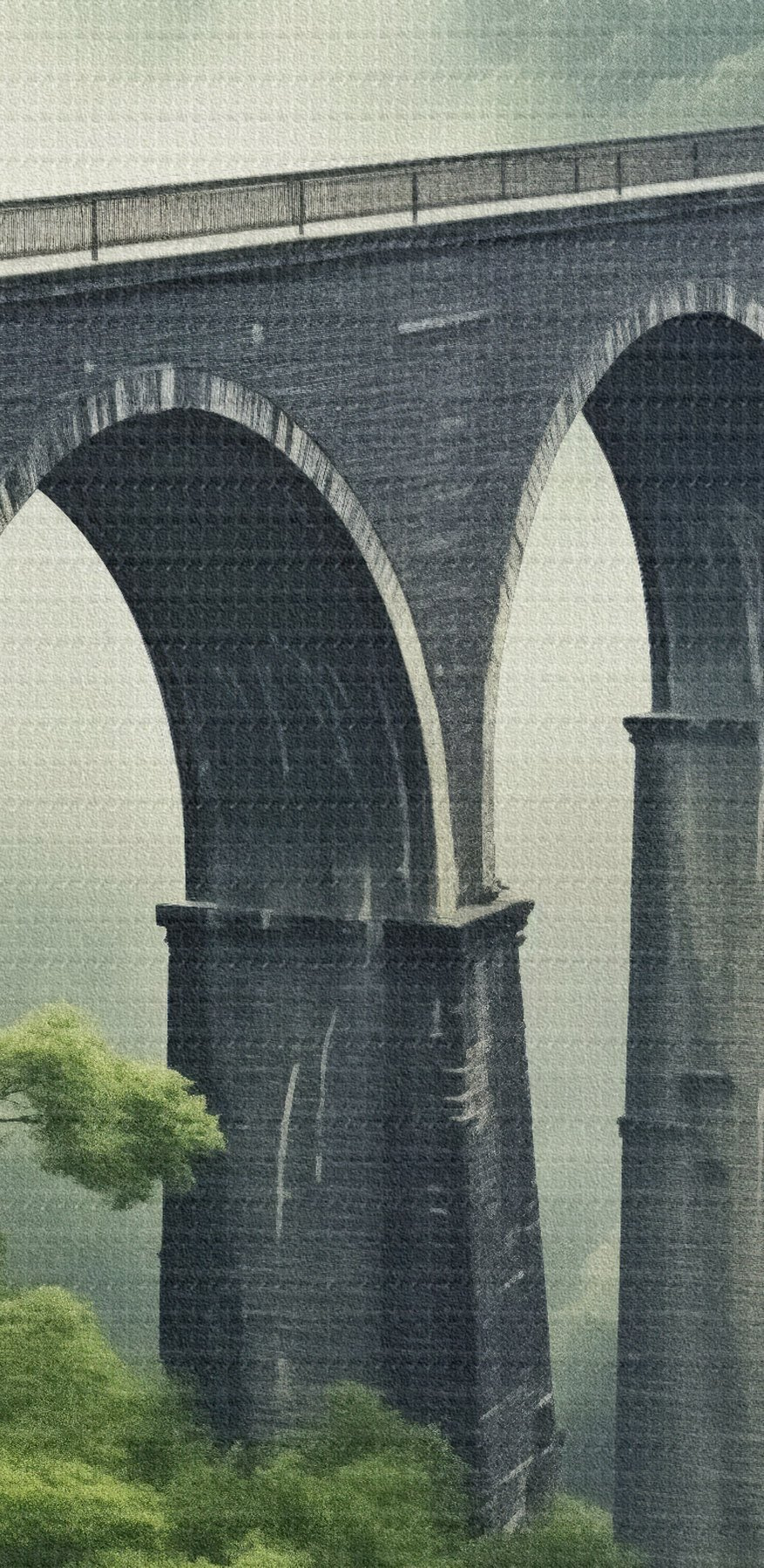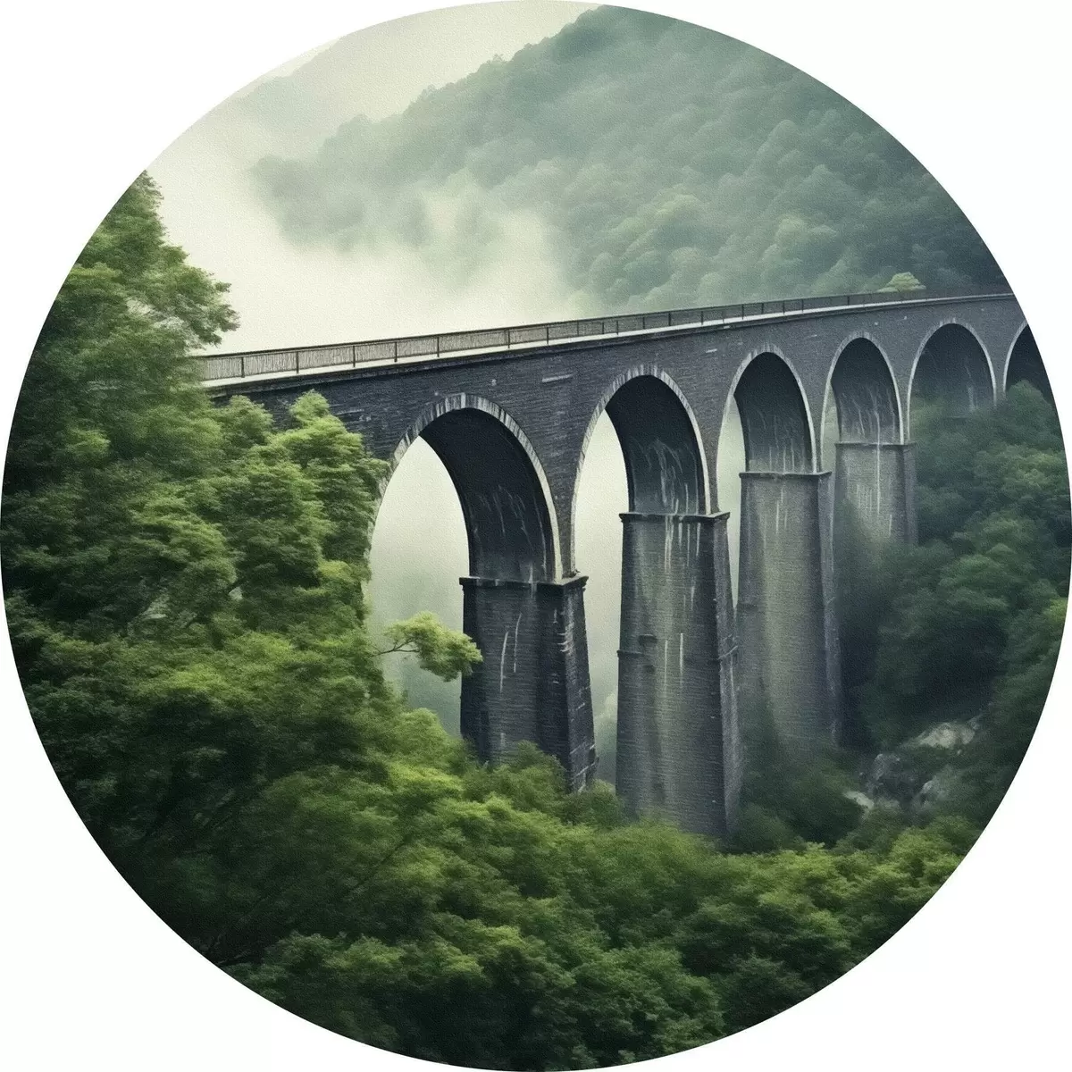 Nuotrauka Akmens viadukas virš rūko apgaubto miškingo slėnio Nr r46483