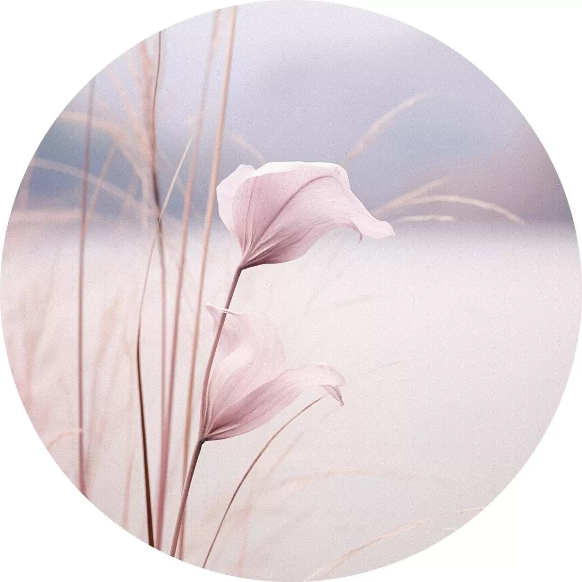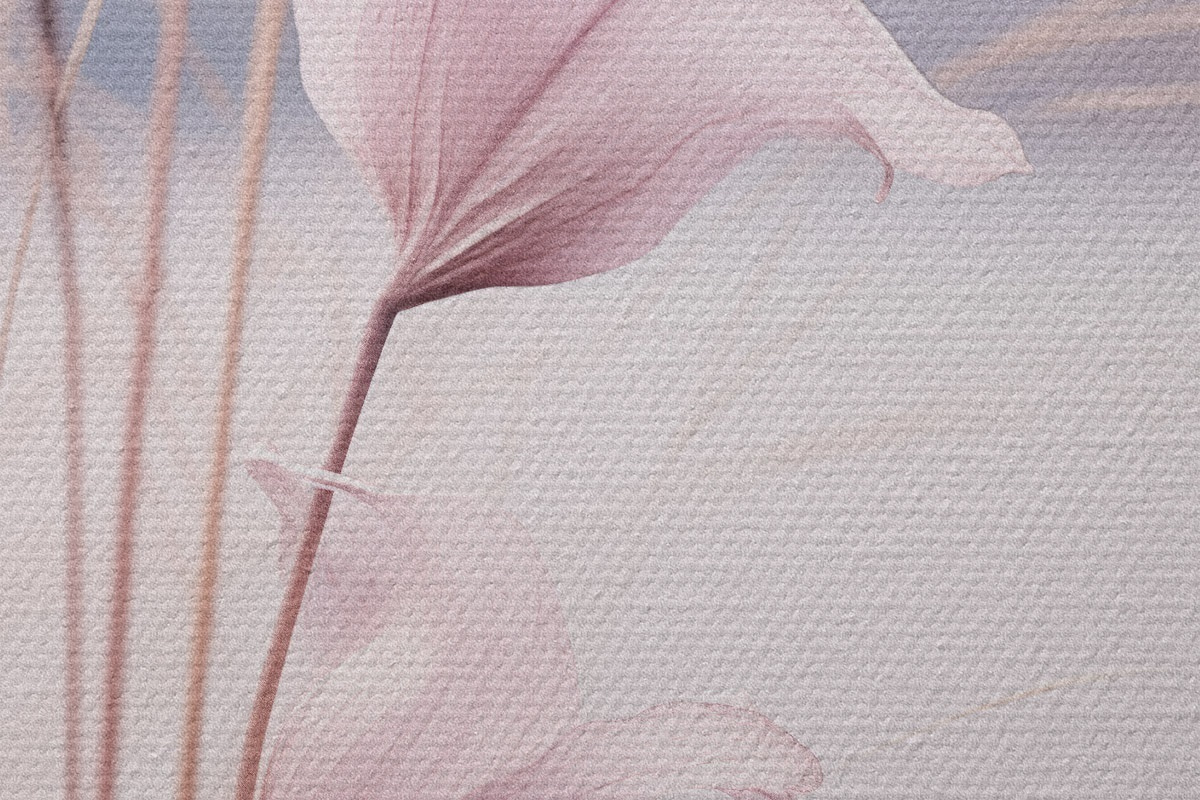 Nuotrauka Subtilūs rožiniai žiedai prie ramiojo ežero kranto Nr r46503