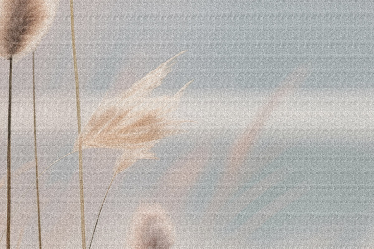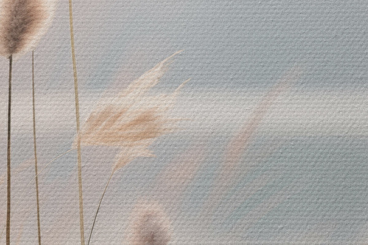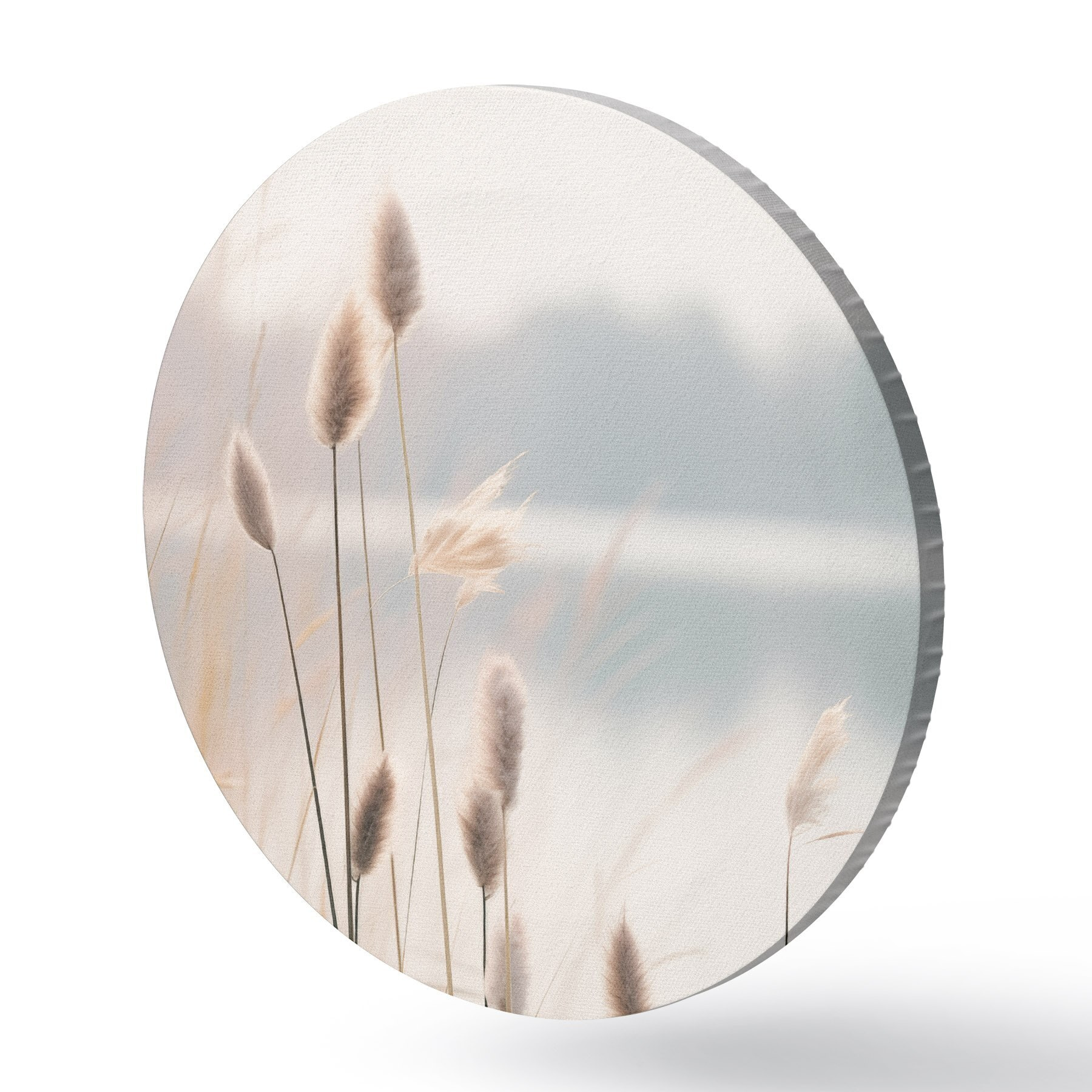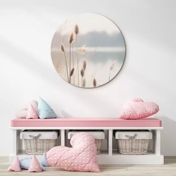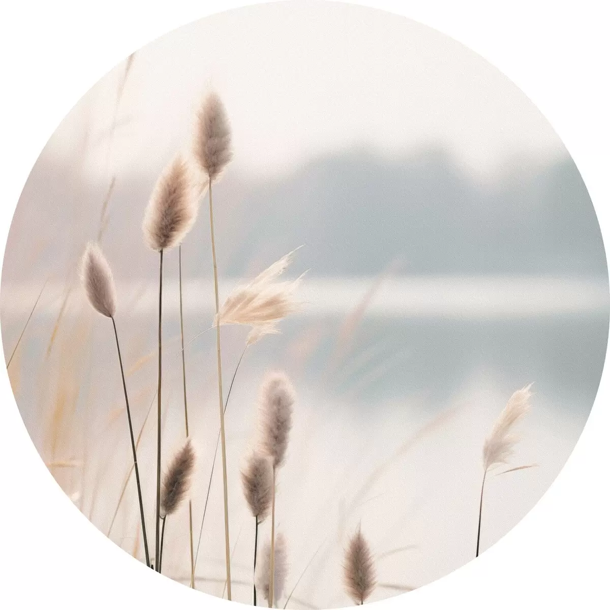 Nuotrauka Minkšti nendrės prie rūko apgaubto ežero kranto, pasteliniai smėlio atspalviai Nr r46504