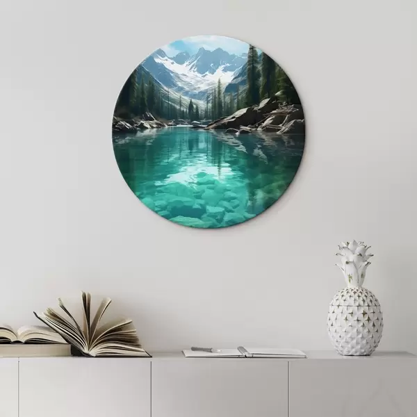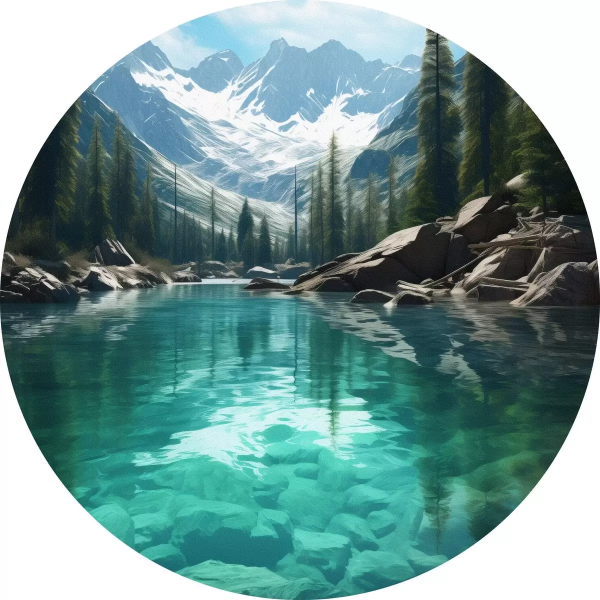 Nuotrauka Skaidri alpių upė su uolėtu dugnu ir snieguotomis viršūnėmis Nr r46514