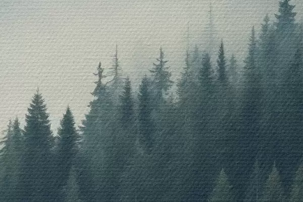 Nuotrauka Rūkas virš spygliuočių šlaitų, sodrios žalios spalvos Nr r46516