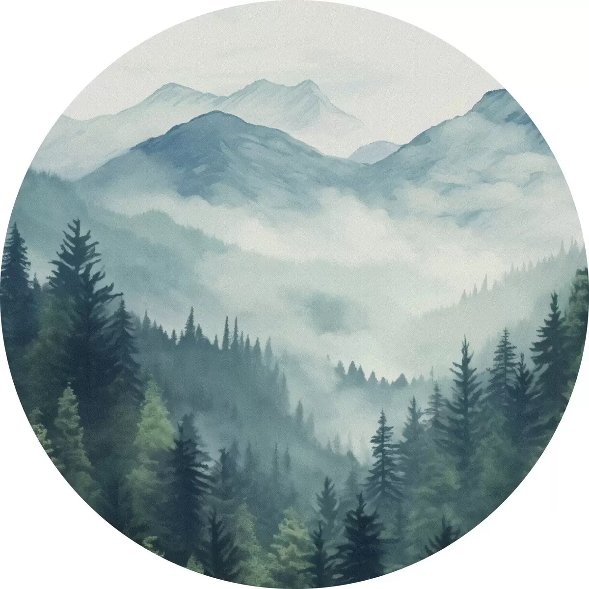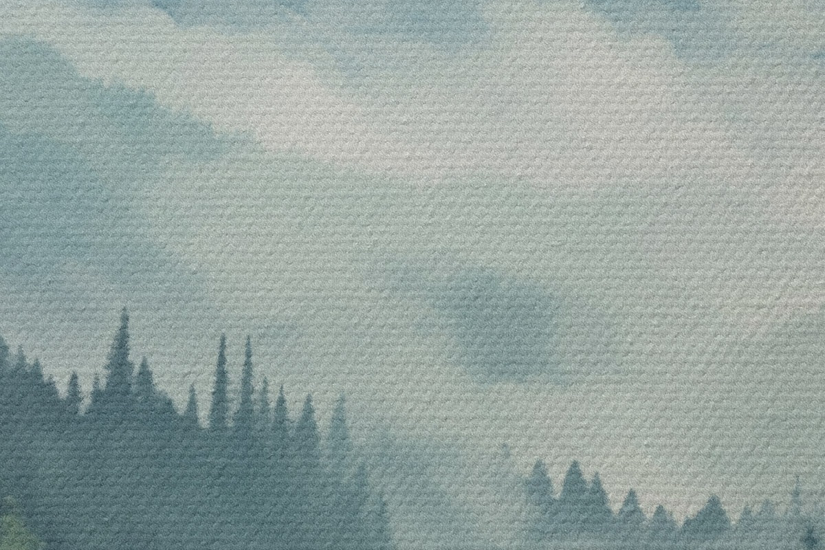 Nuotrauka Akvareliniai kalnai ir miškas švelniame rytiniame rūke Nr r46519