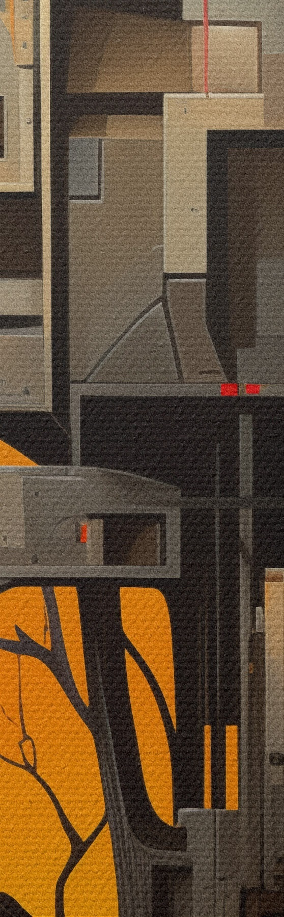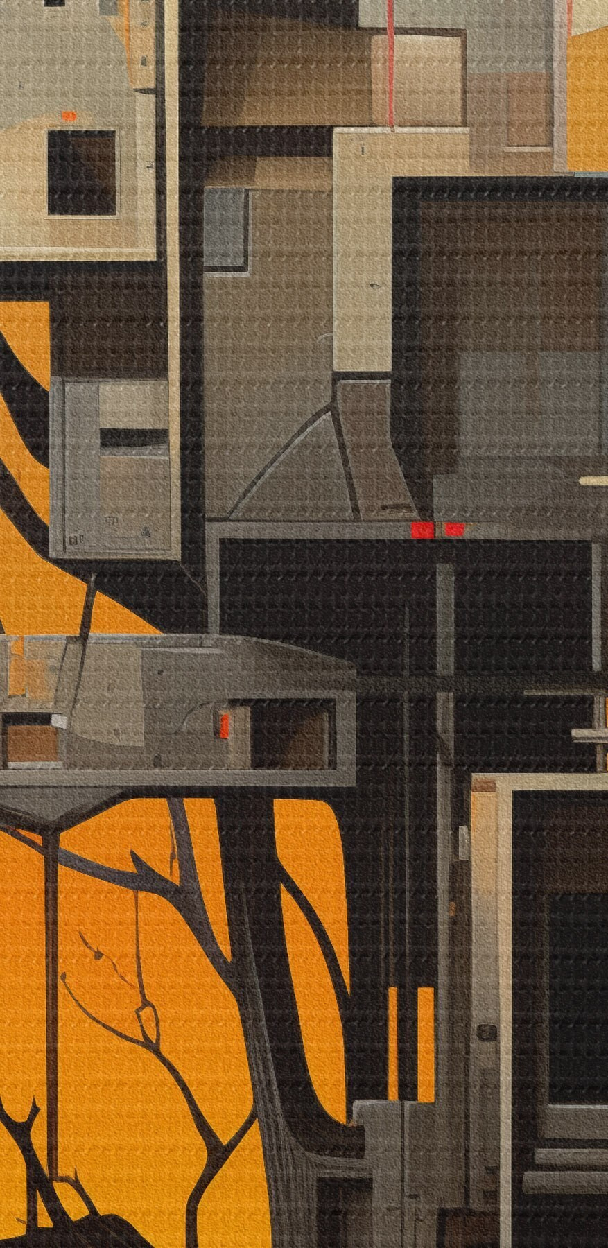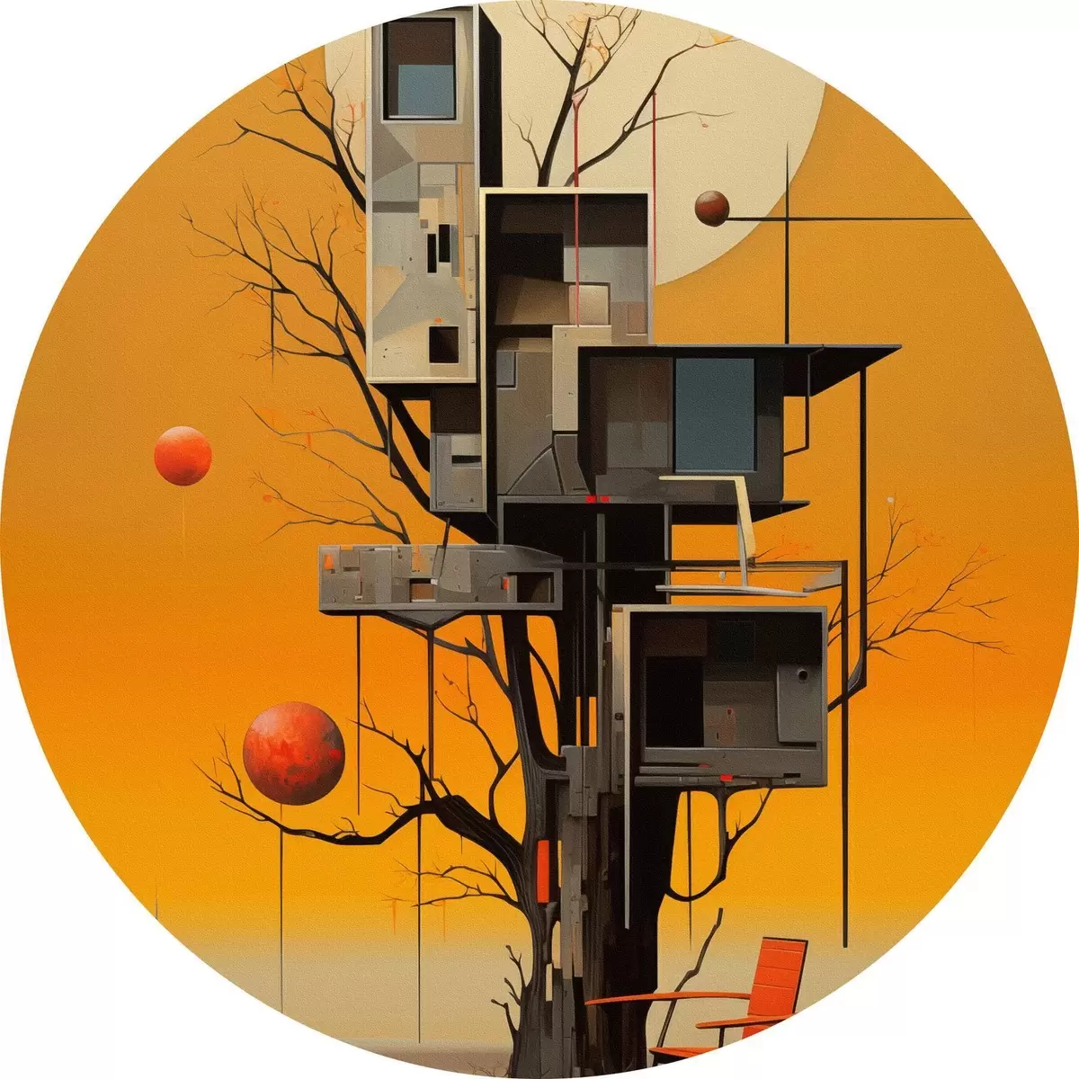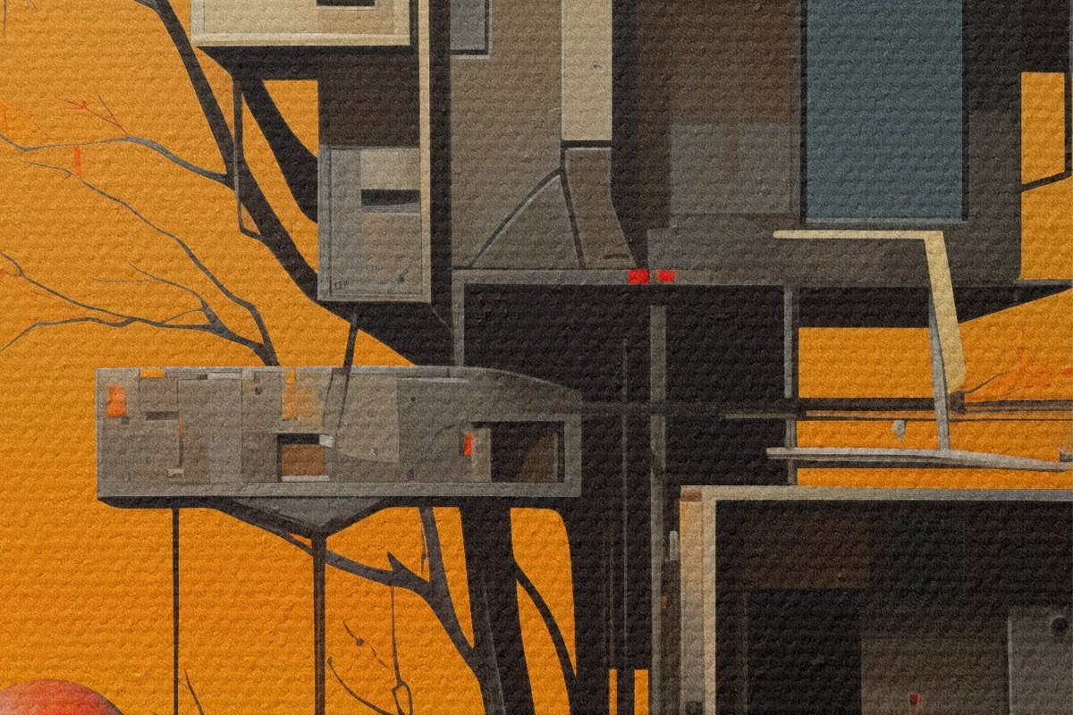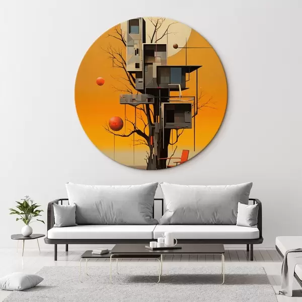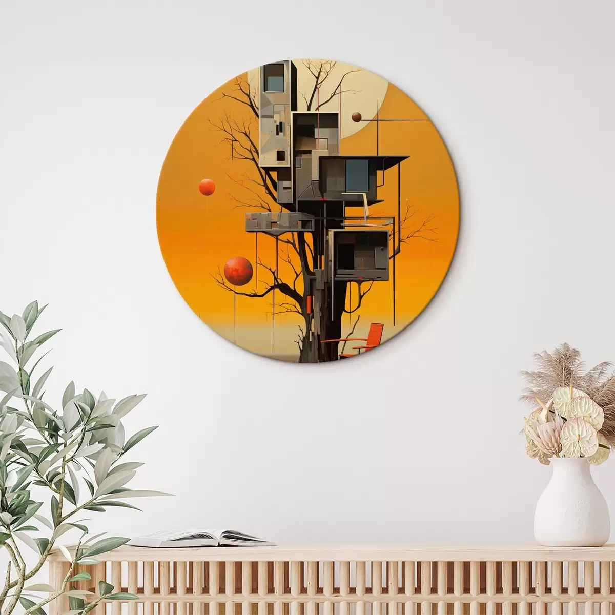 Nuotrauka Surreališkas namelis medyje oranžiniame fone Nr r46526