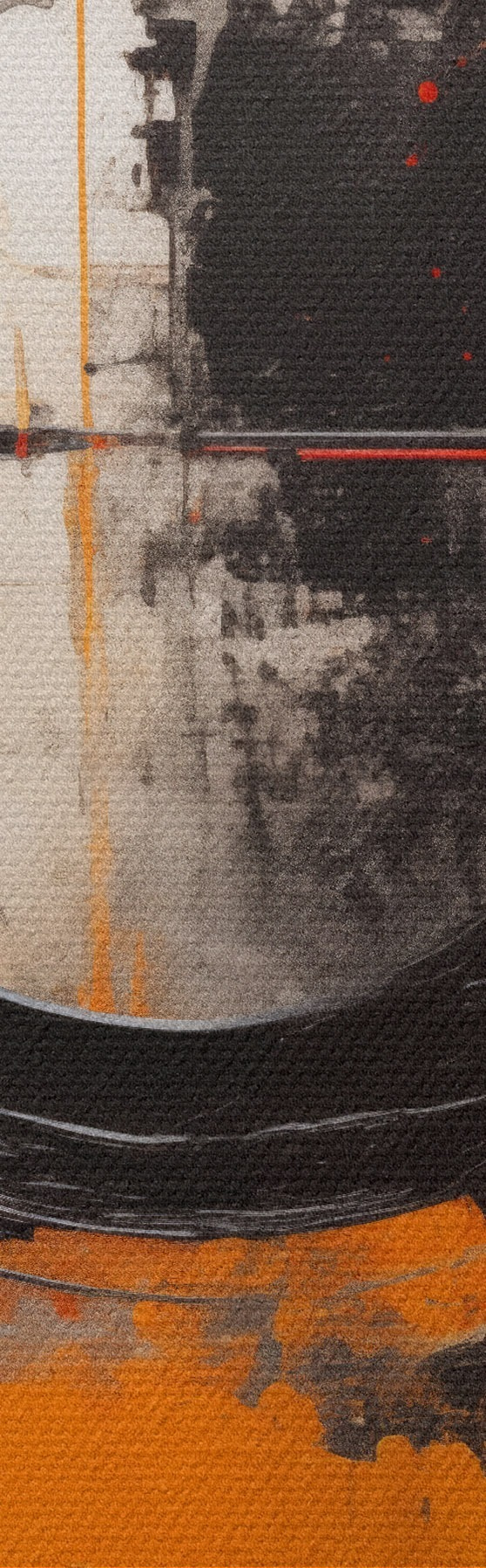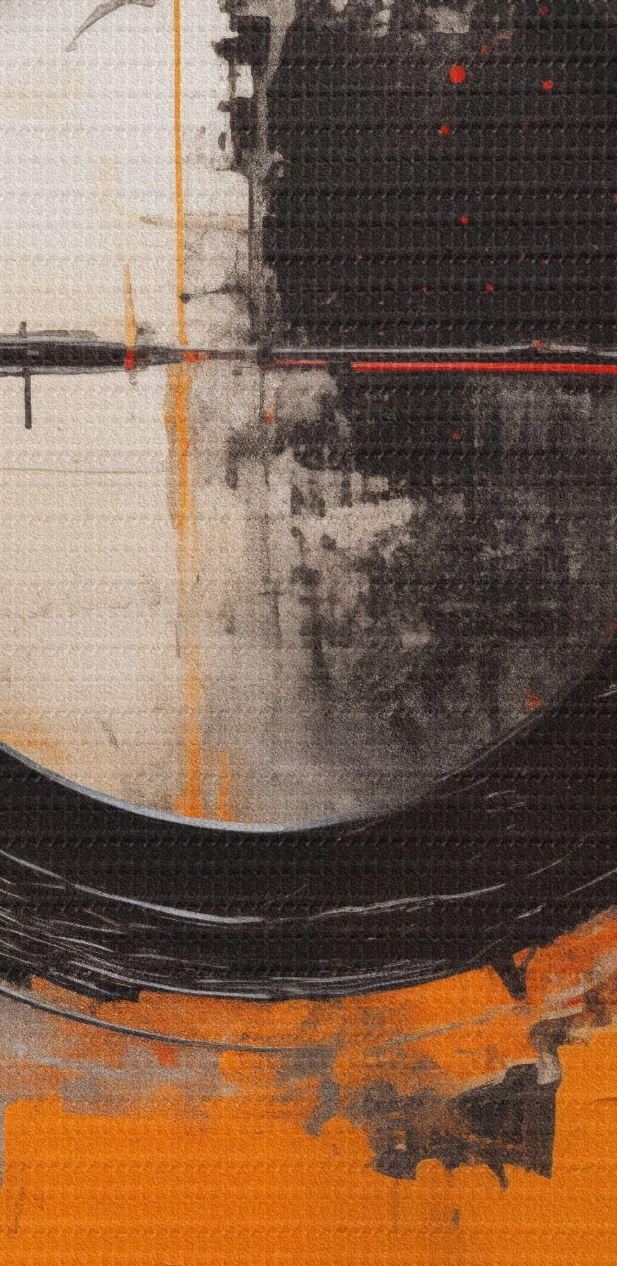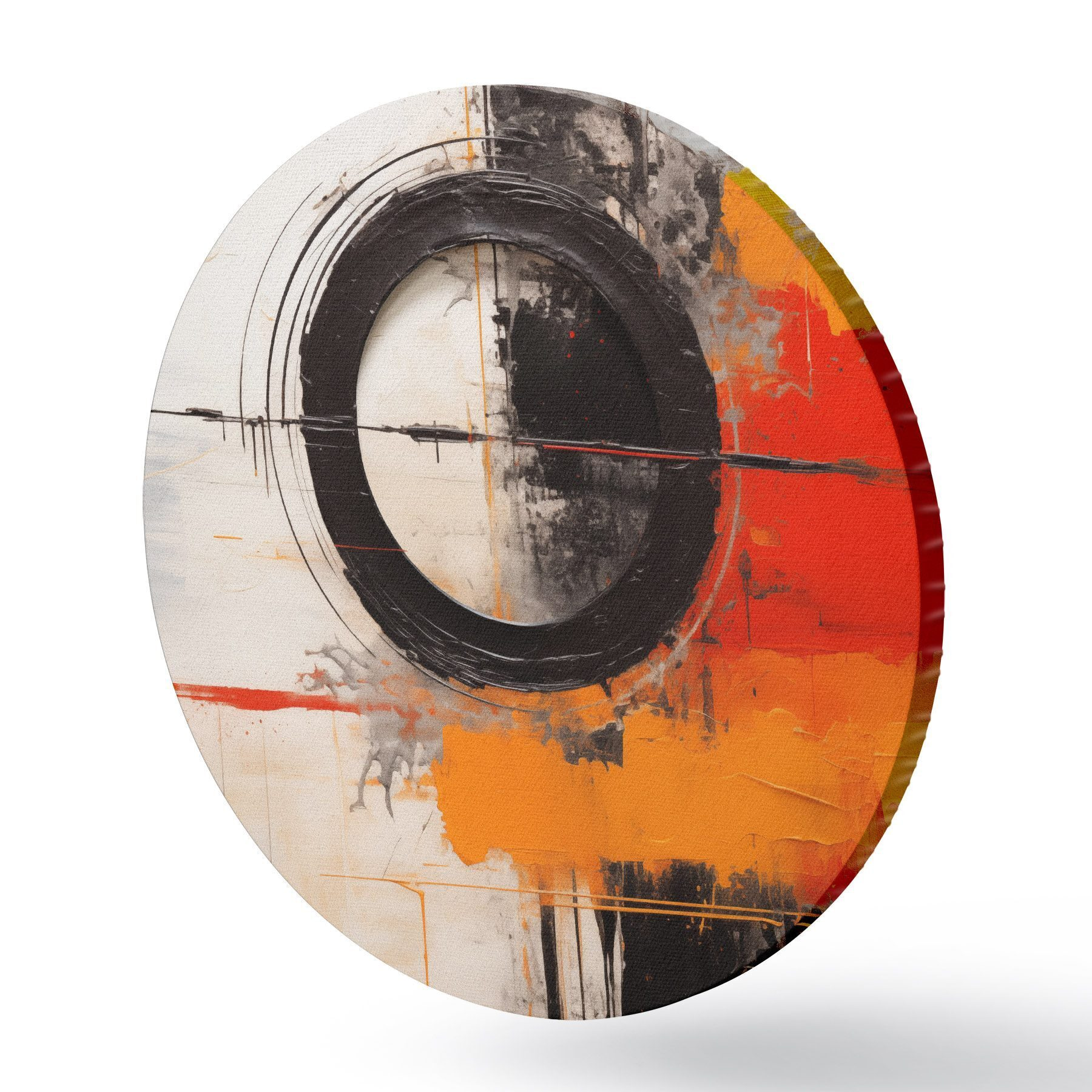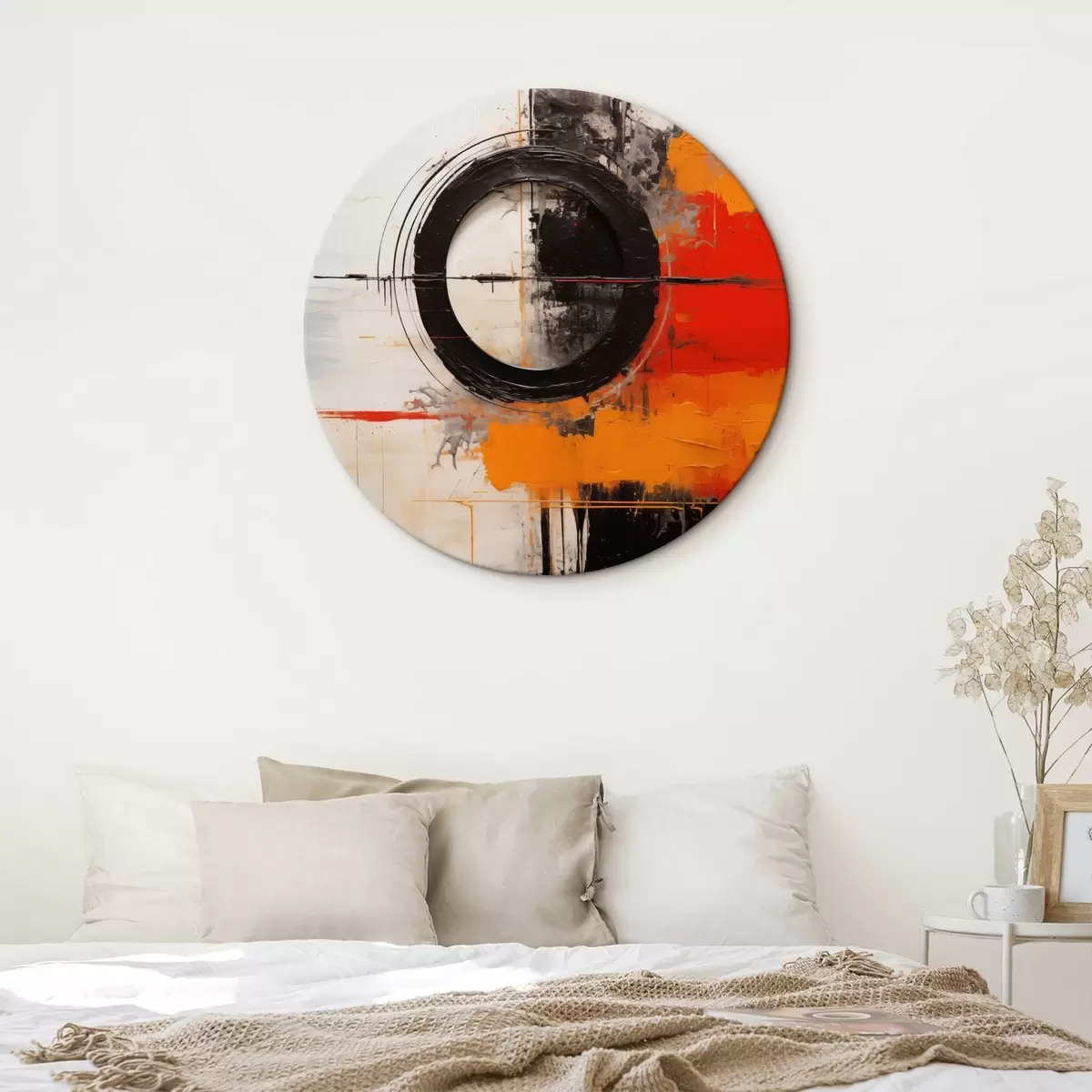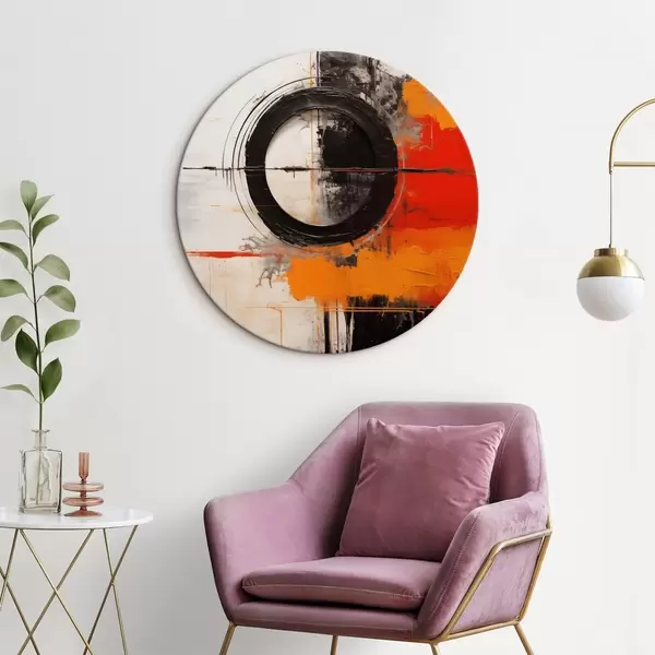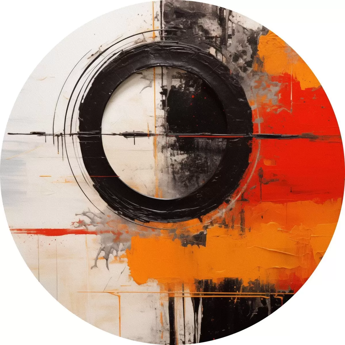 Nuotrauka Juodas apskritimas ant balto fono, oranžiniai potėpiai ir purslai Nr r46549