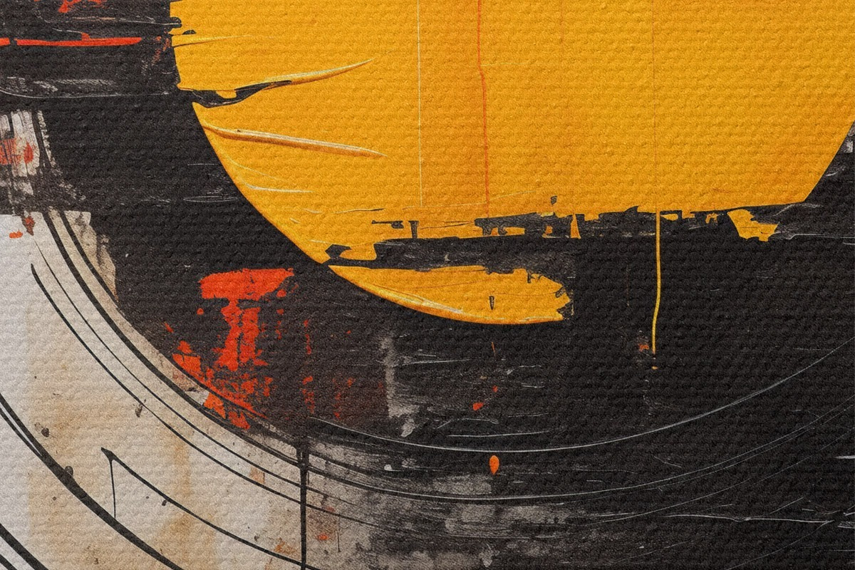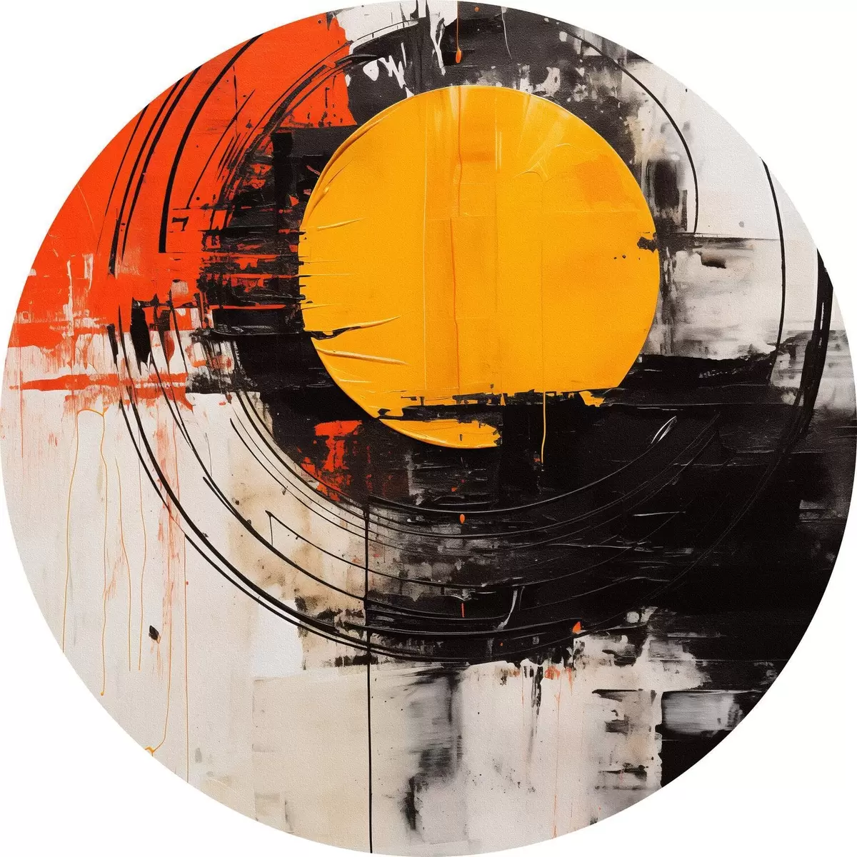 Nuotrauka Oranžinis diskas juodame žiede, brūkšniai ir purslai Nr r46550
