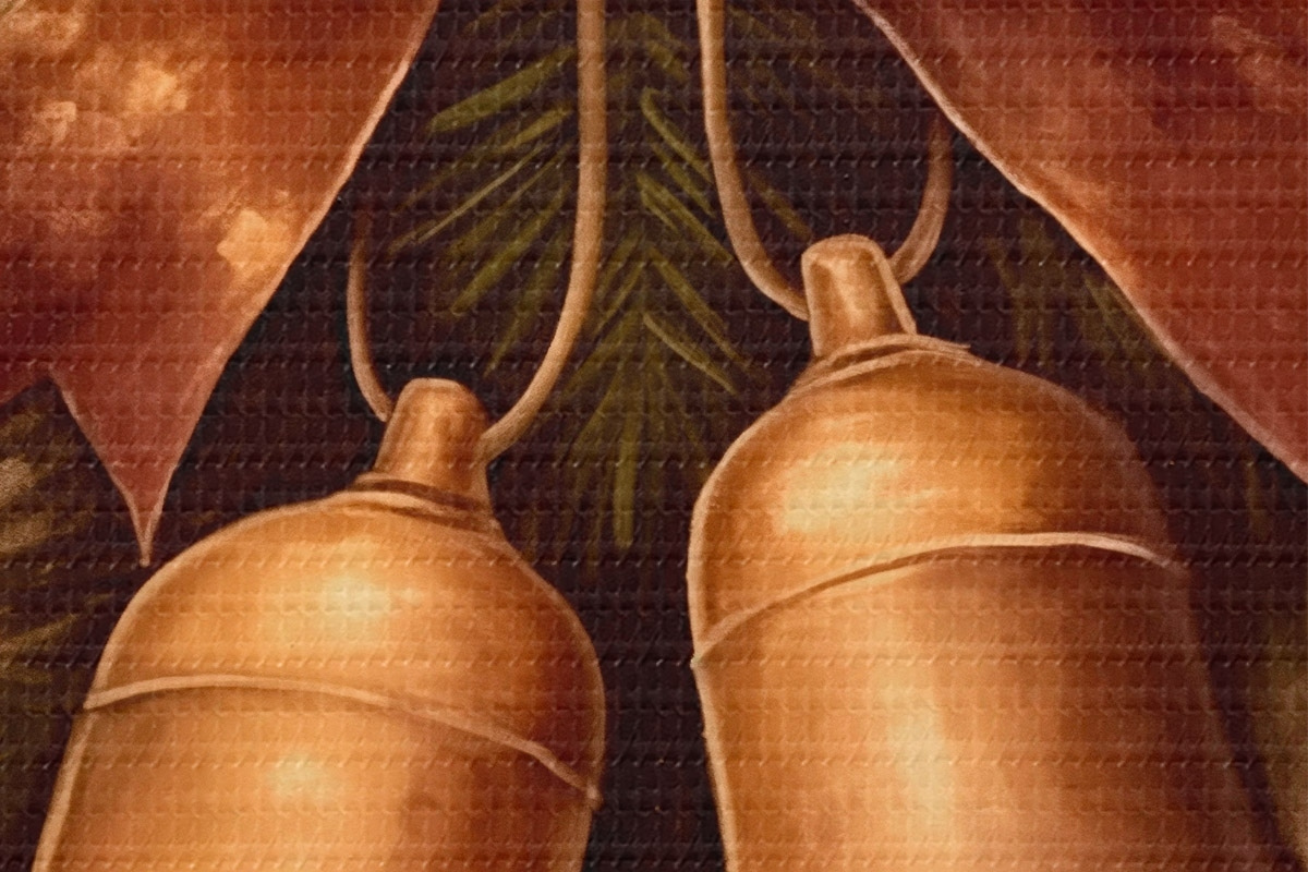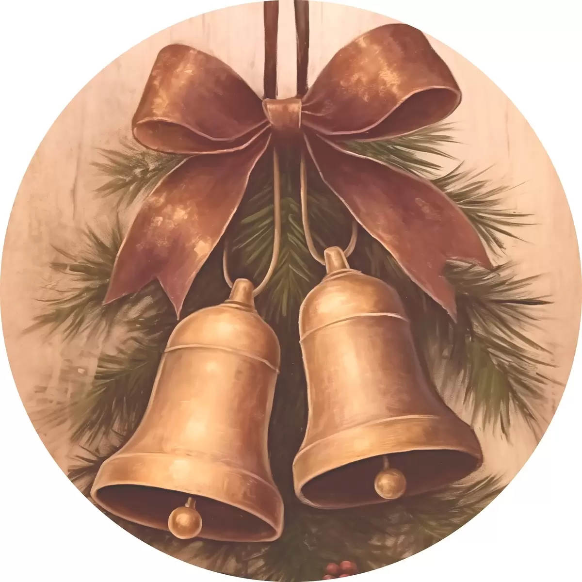 Nuotrauka Vintage Kalėdų dekoracija su dviem varpeliais ir kaspinu Nr r46626