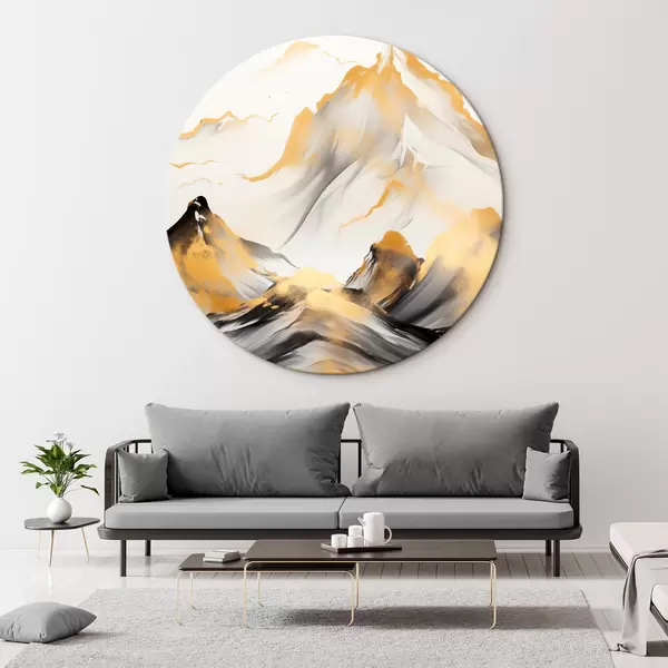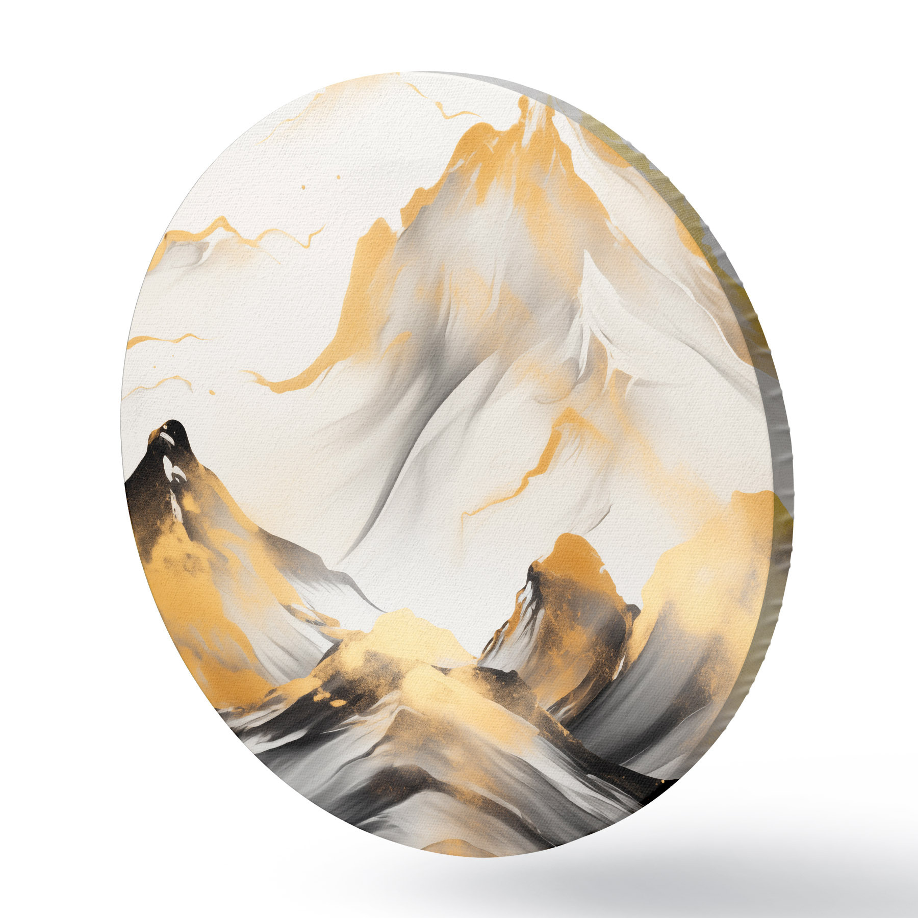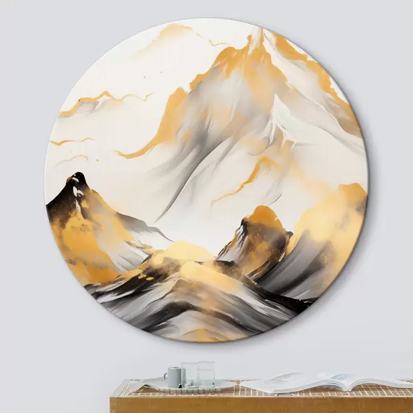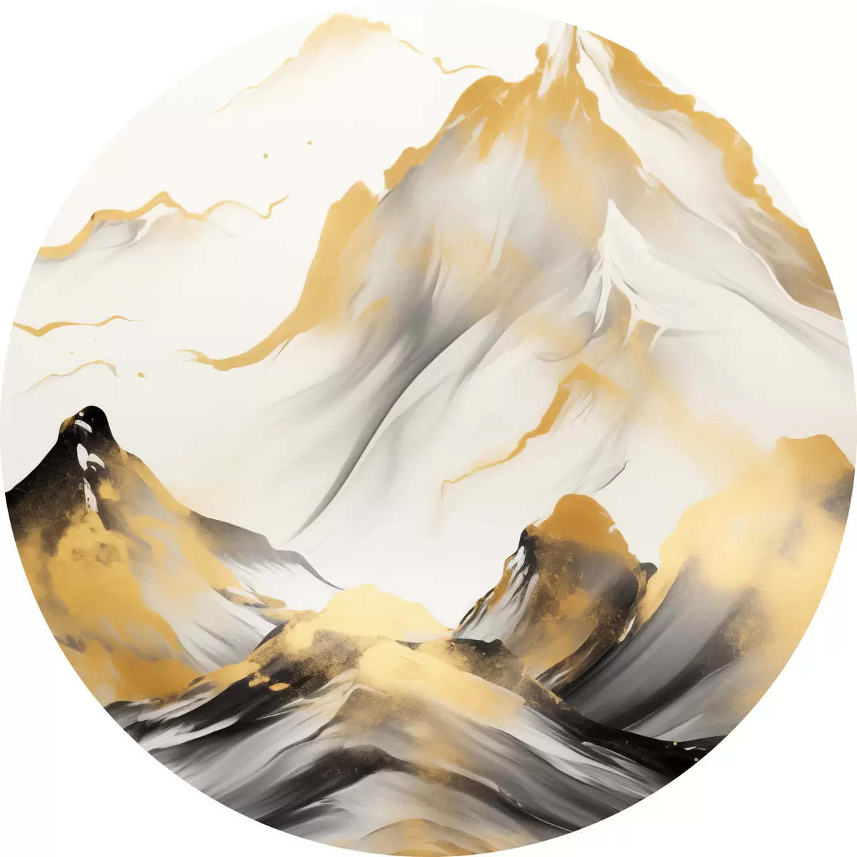 Nuotrauka Tekstūruotos geltonos ir juodos kalvos su snieguotomis viršūnėmis, tapybos stilius „ink wash“, minimalistinis kalnų masyvas Nr r46683