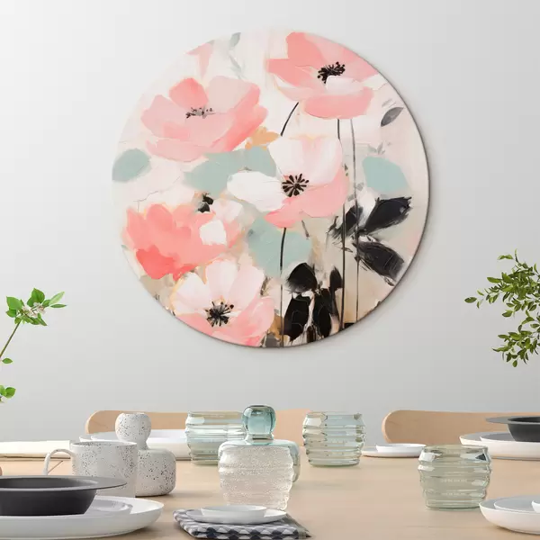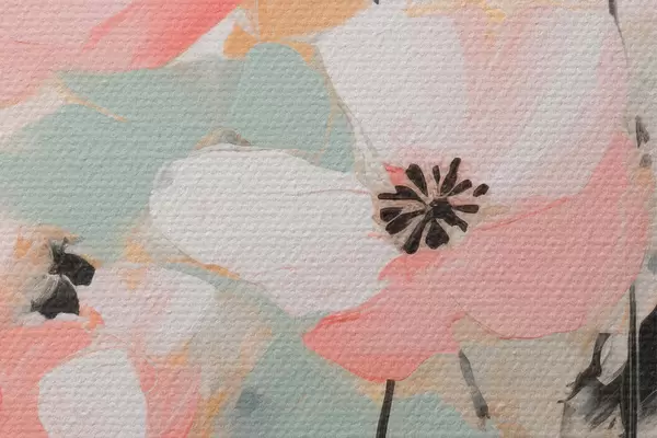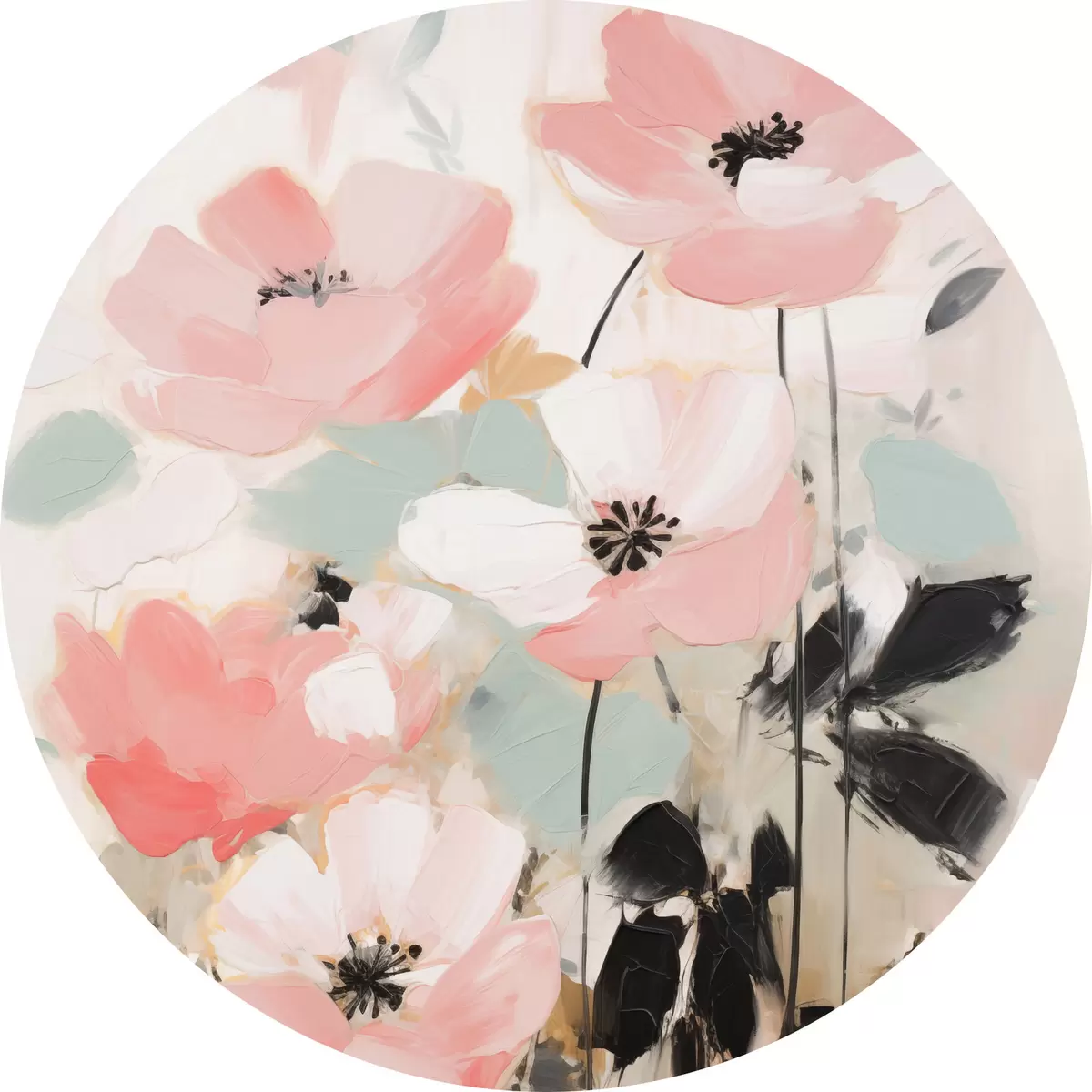 Nuotrauka Rožinės ir juodos gėlės su lapais, švelnios pastelinės spalvos, abstraktus gėlių kompozicija, minimalistinis menas Nr r46688