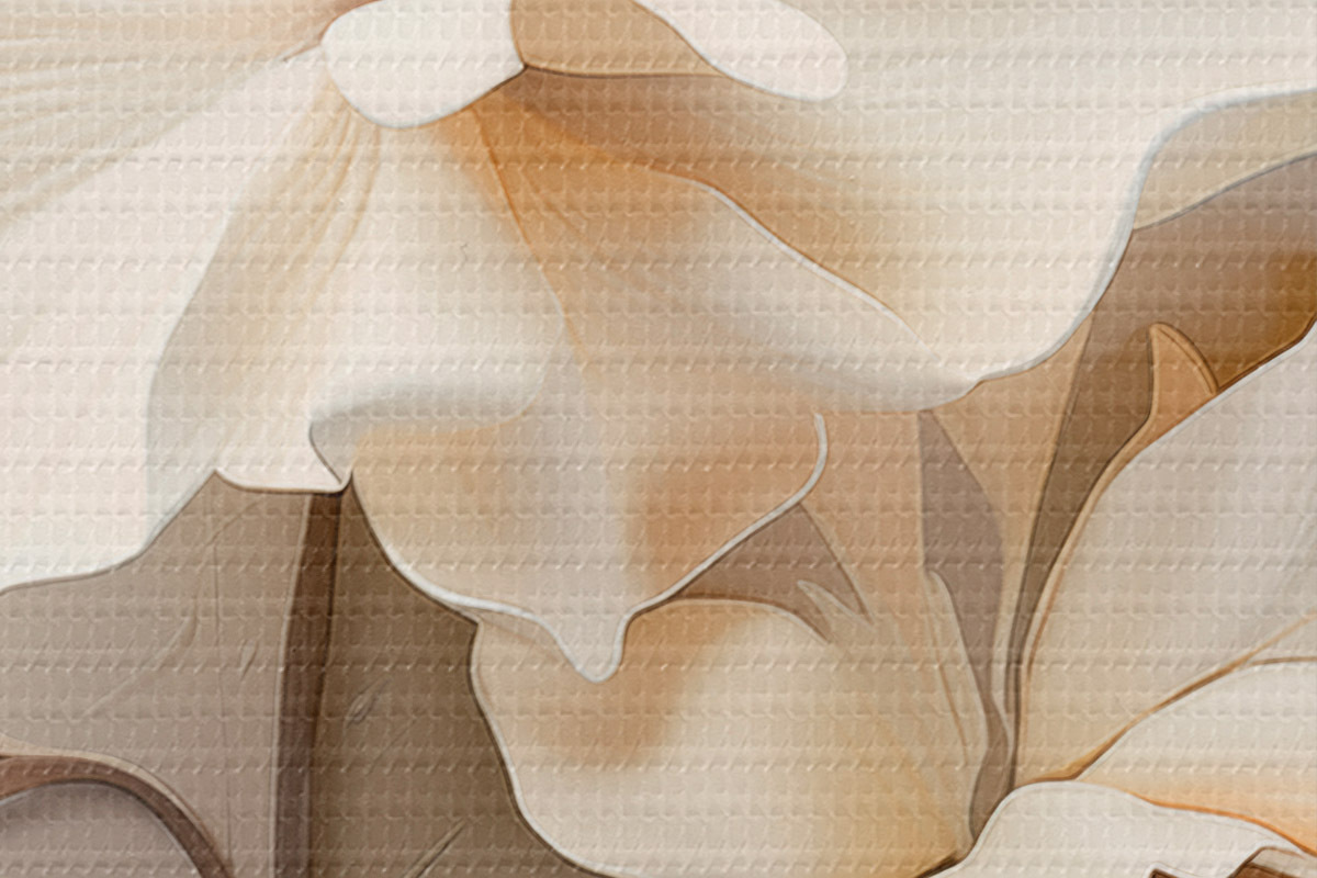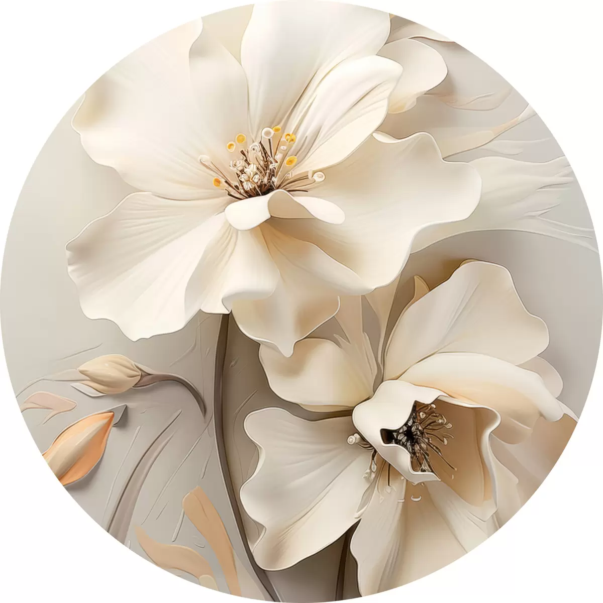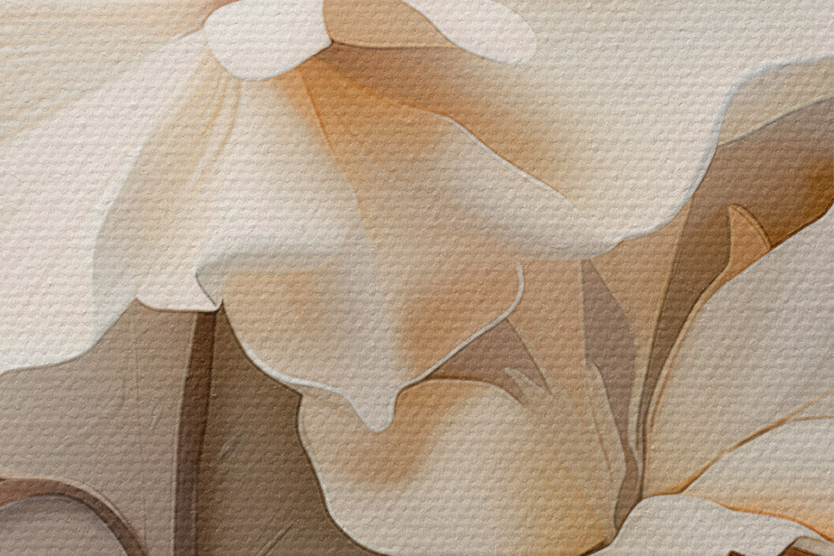 Nuotrauka Balta gėlė, švelnių atspalvių žiedlapiai, šviesiai smėlio spalvos fonas, elegantiška kompozicija, minimalistinis stilius Nr r46700