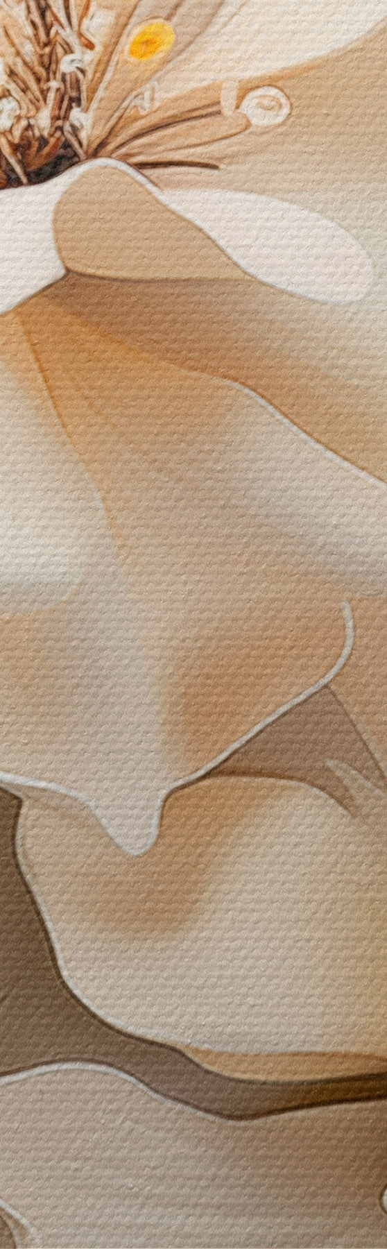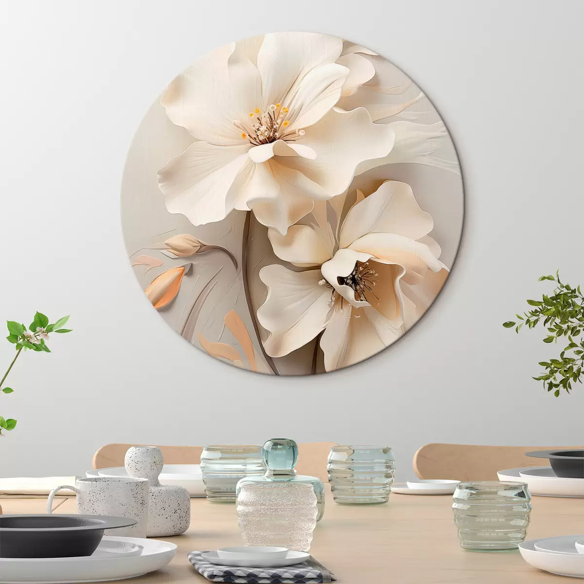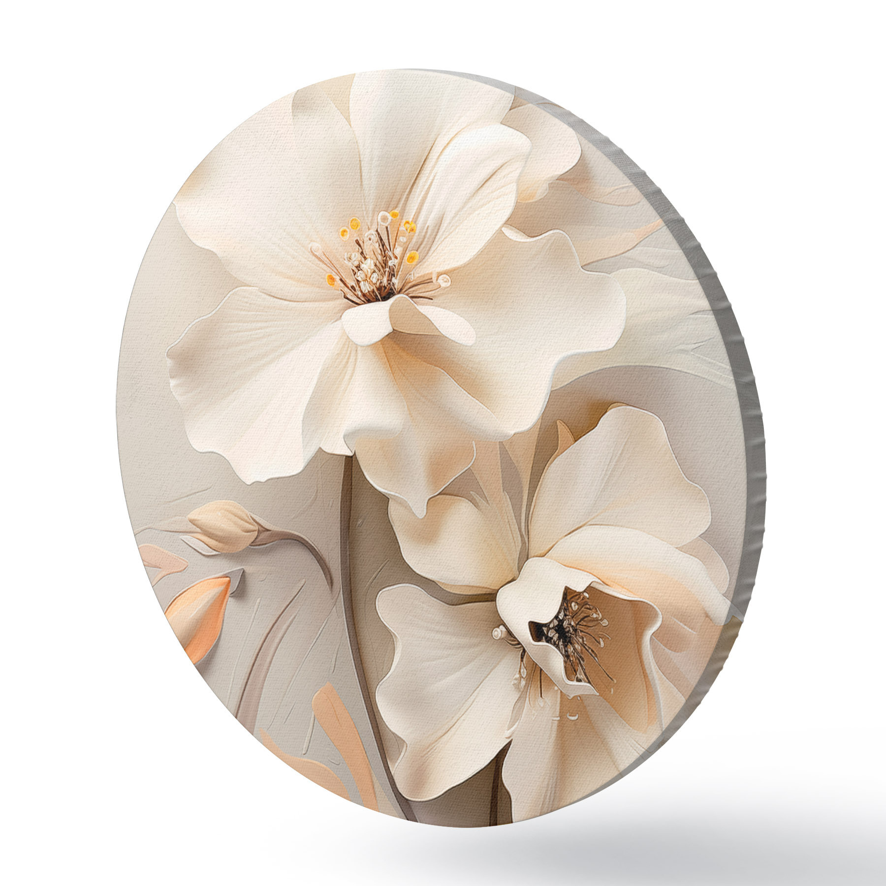 Nuotrauka Balta gėlė, švelnių atspalvių žiedlapiai, šviesiai smėlio spalvos fonas, elegantiška kompozicija, minimalistinis stilius Nr r46700