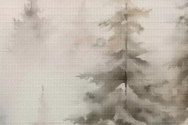 Nuotrauka Aukštos pušys, padengtos sniegu, stovinčios rūko apgaubtame miške, švelnus, tylus žiemos peizažas Nr r46701
