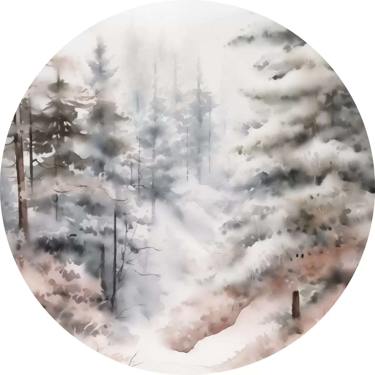 Nuotrauka Aukštos pušys, padengtos sniegu, stovinčios rūko apgaubtame miške, švelnus, tylus žiemos peizažas. Nr r46702