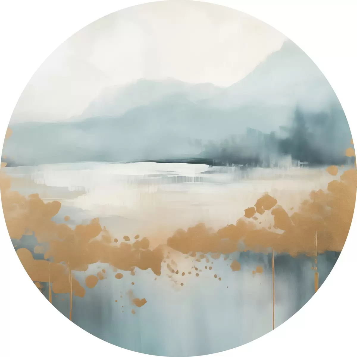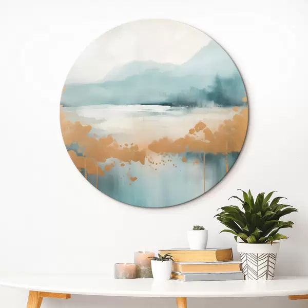 Nuotrauka Abstraktus peizažas su kalnais ir ežeru žalios ir tekstūruotos geltonos spalvos, švelniais potėpiais, minimalistinis meno kūrinys Nr r46703