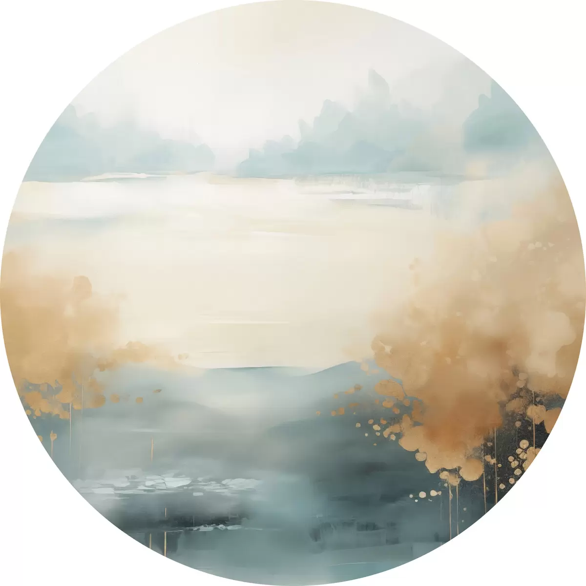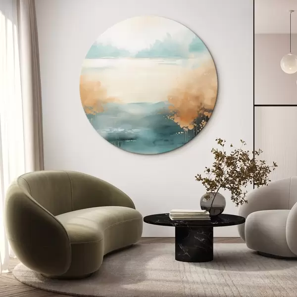 Nuotrauka Abstraktus peizažas su kalnais ir ežeru žalios ir tekstūruotos geltonos spalvos, švelniais potėpiais, minimalistinis meno kūrinys Nr r46704