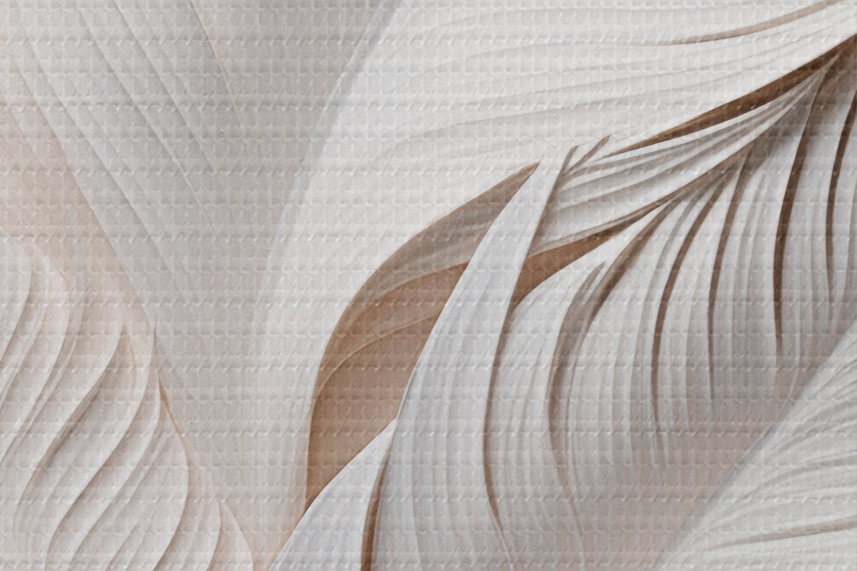 Nuotrauka Balta lapai su sudėtingais detalėmis, sukuriančiais tekstūrą ir sluoksniuotą efektą, minimalistinis menas Nr r46706