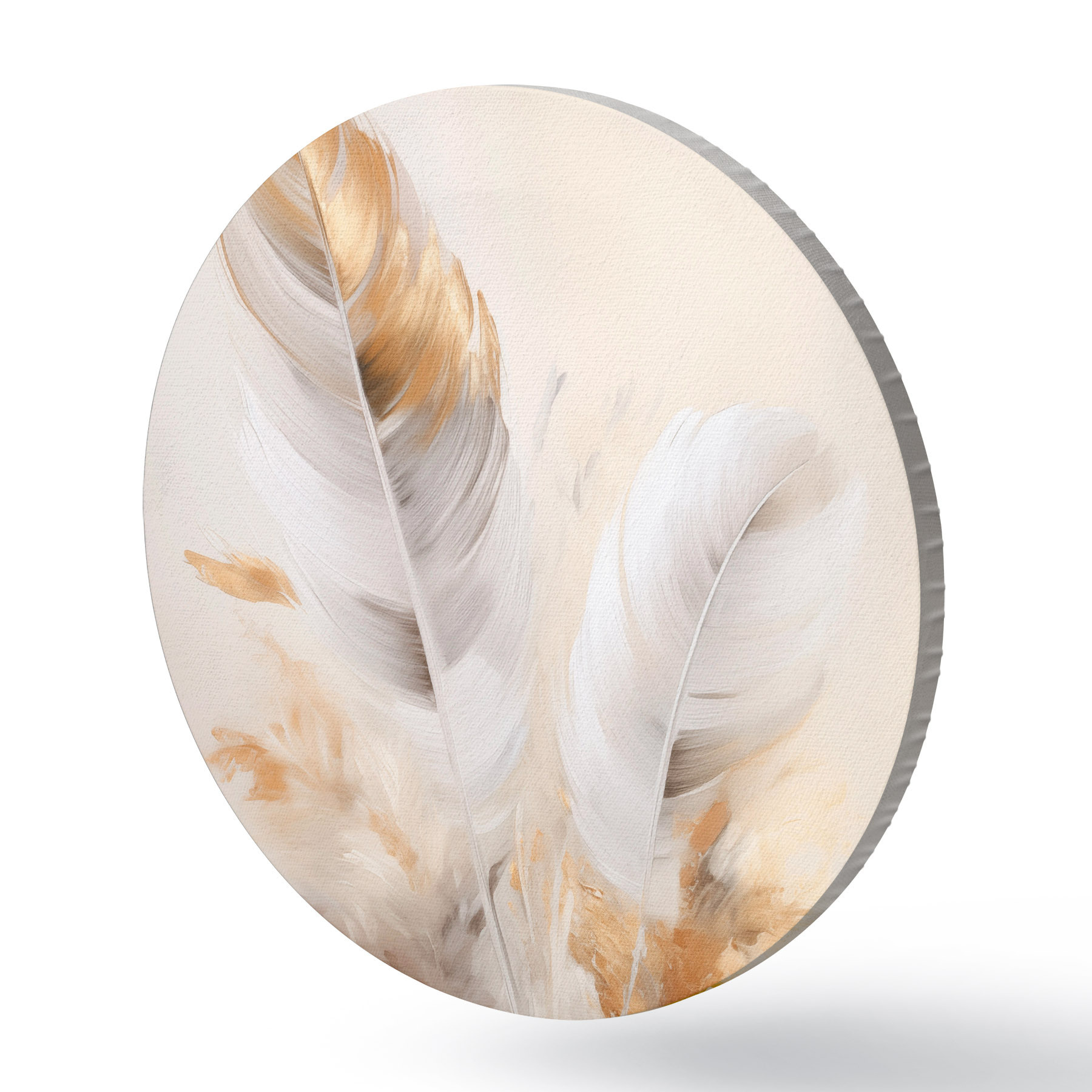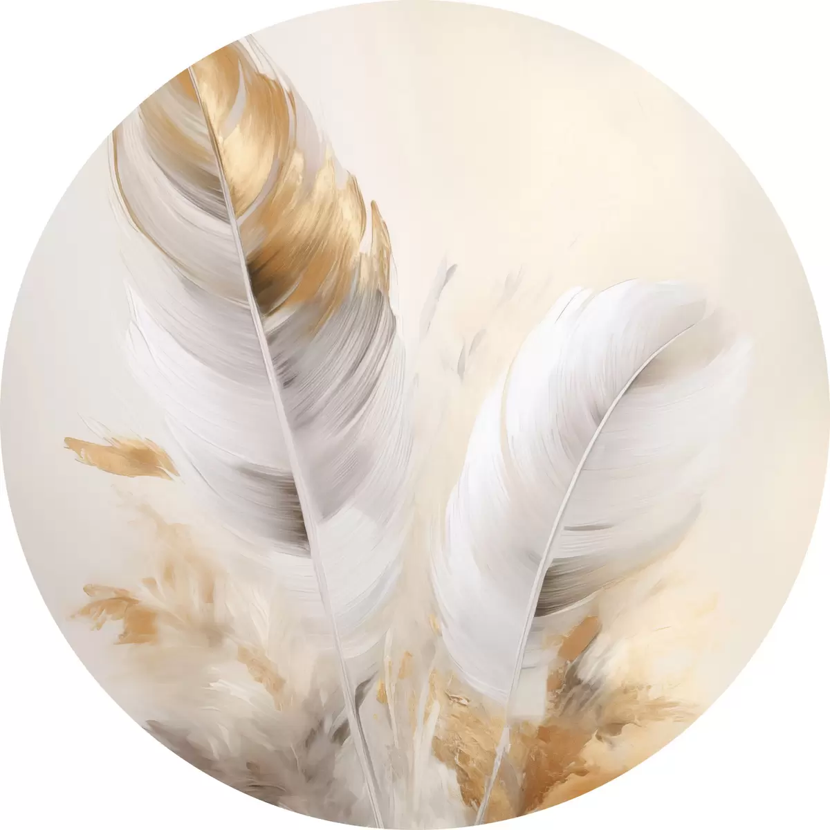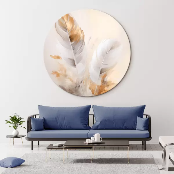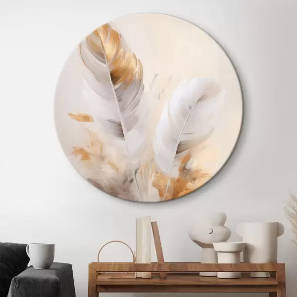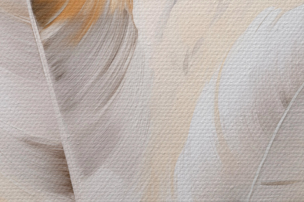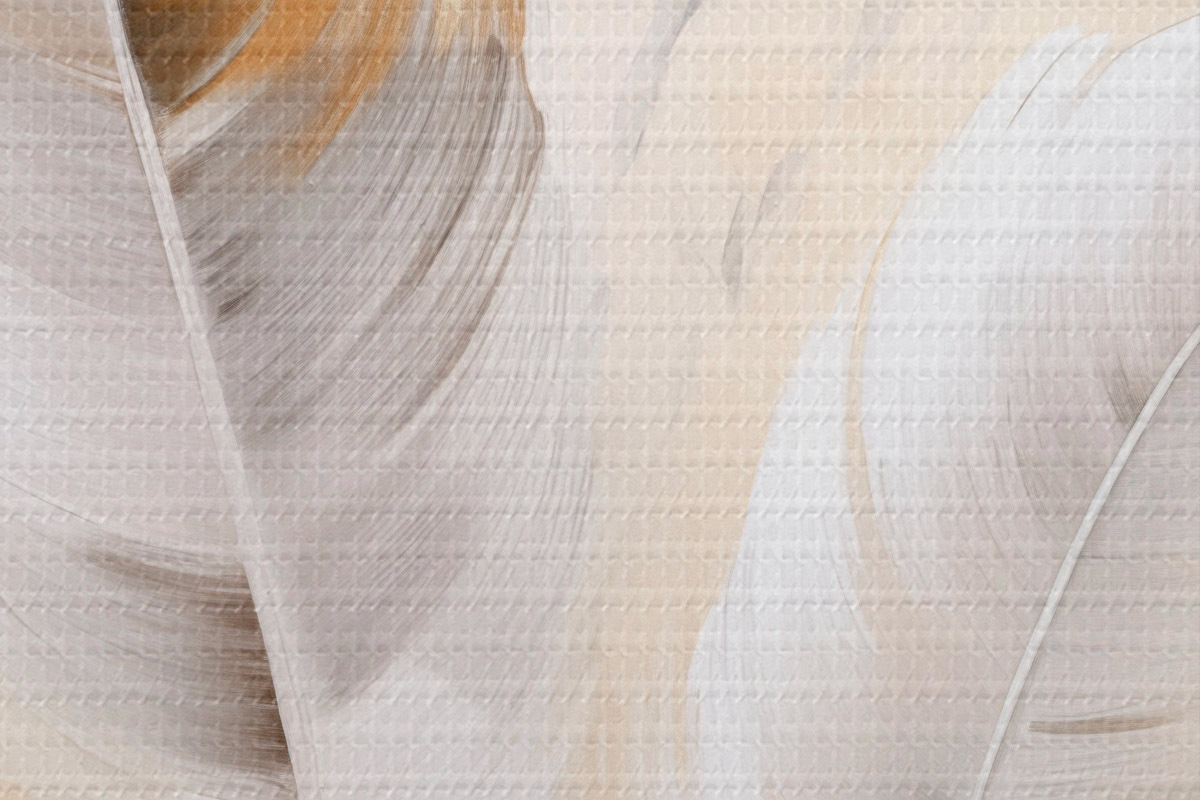 Nuotrauka Abstrakčios plunksnos, apsuptos smėlio ir rudos spalvos plunksnų, švelnios ir subtilios, ant šviesiai smėlio spalvos fono. Nr r46711