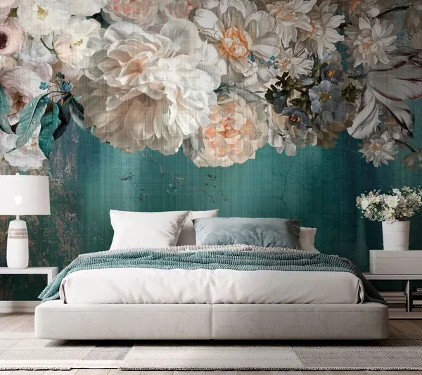 Fototapetai Didelė sodri gėlių puokštė su grunge tekstūra Nr. u95430