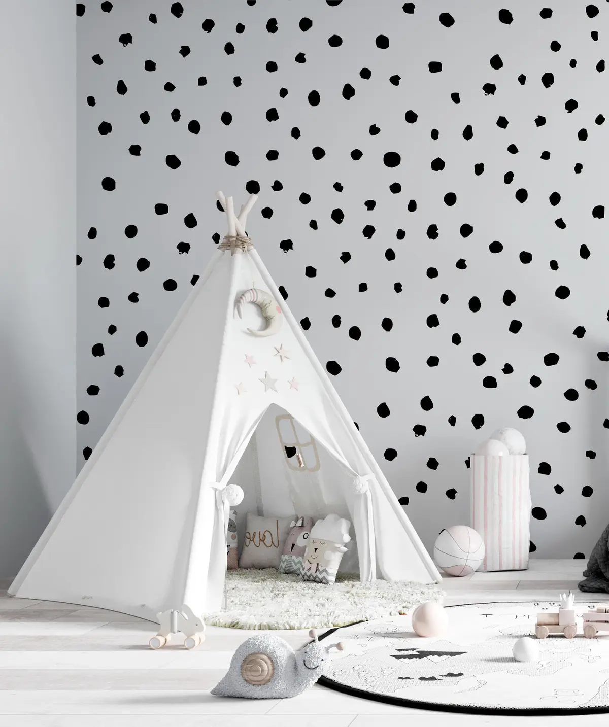 Fototapetai Stilingi juodi taškai skandinavišku hygge stiliumi Nr. u97351