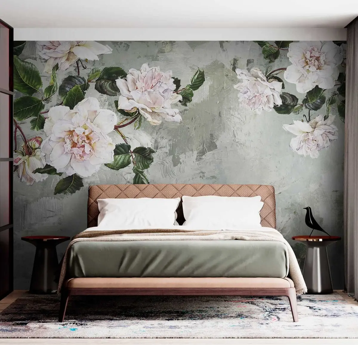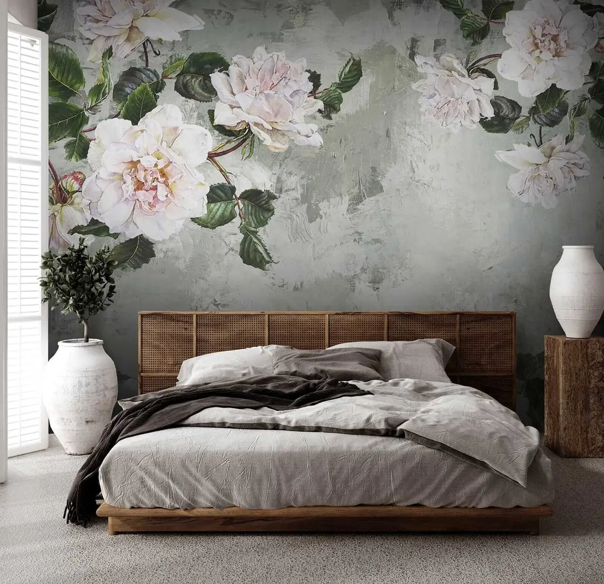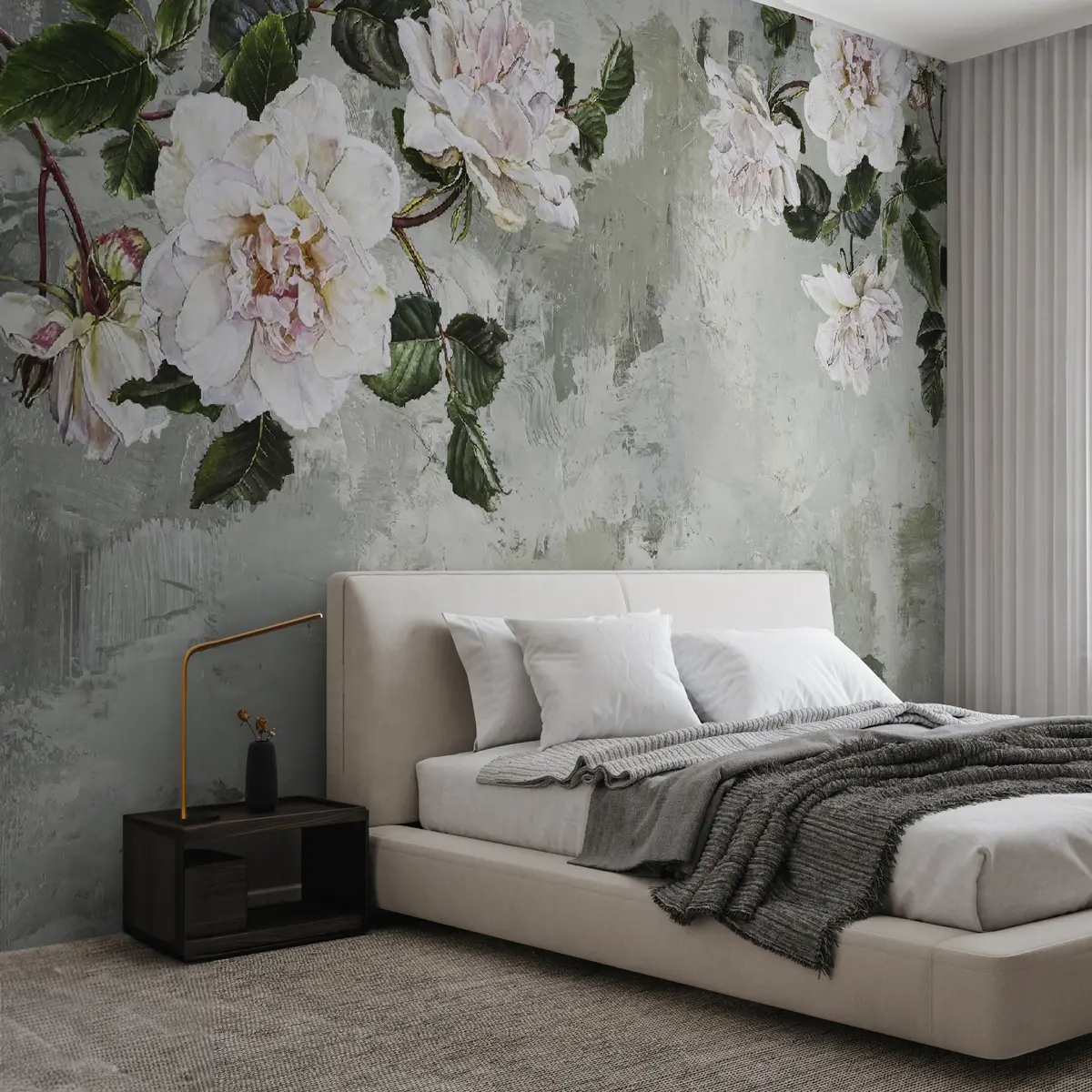 Fototapetai Žydinčios šakos aptriušusios sienos fone Nr. u37301