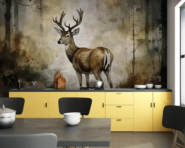 Fototapetai Rankomis pieštas elnias miške Nr. u95410
