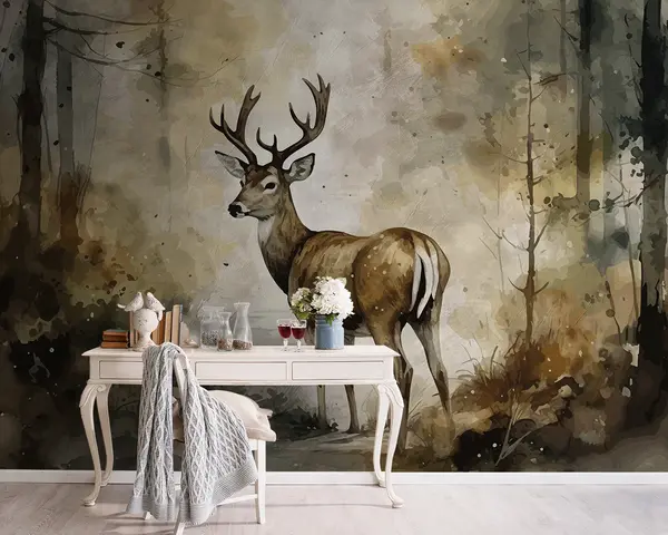 Fototapetai Rankomis pieštas elnias miške Nr. u95410