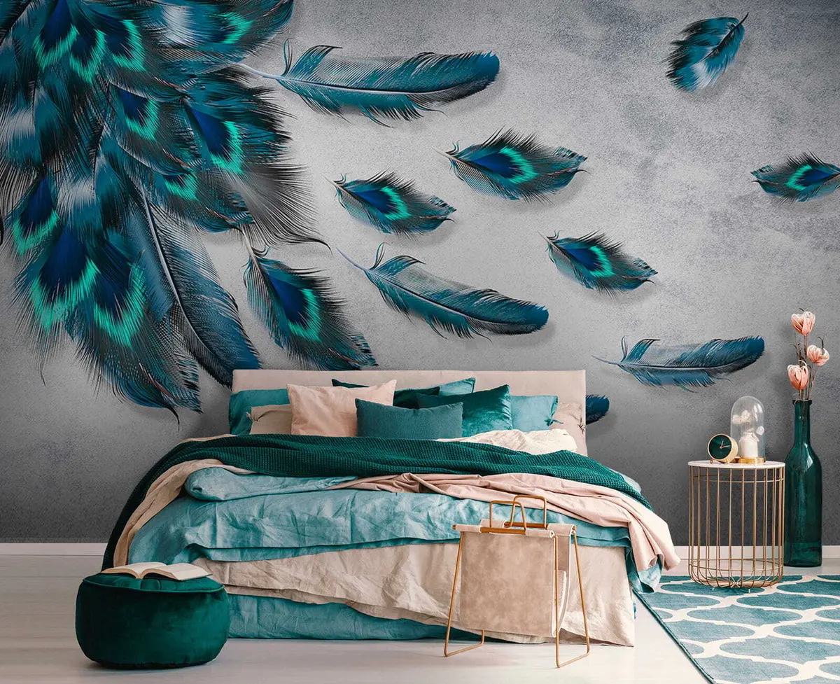 Fototapetai Povų plunksnos betoninės sienos fone Nr. u29836
