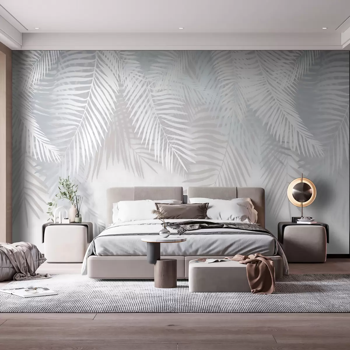 Fototapetai Balti palmių lapai ant grunge tekstūros Nr. u94457