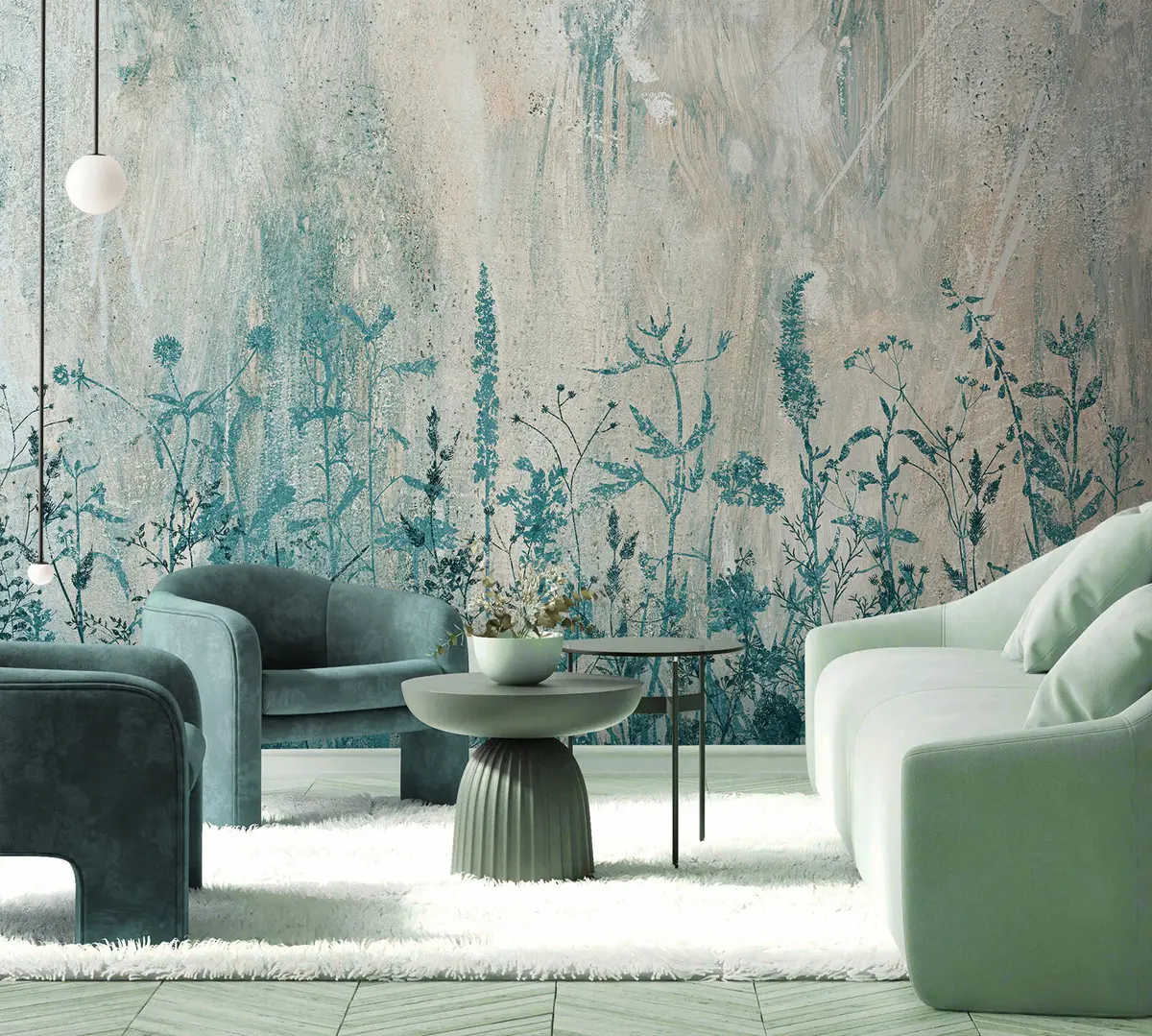 Fototapetai Žali augalai ant betoninės sienos Nr. u93666