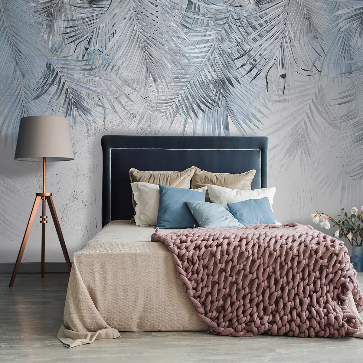 Fototapetai Mėlyni atogrąžų lapai grunge stiliumi Nr. u93843v3