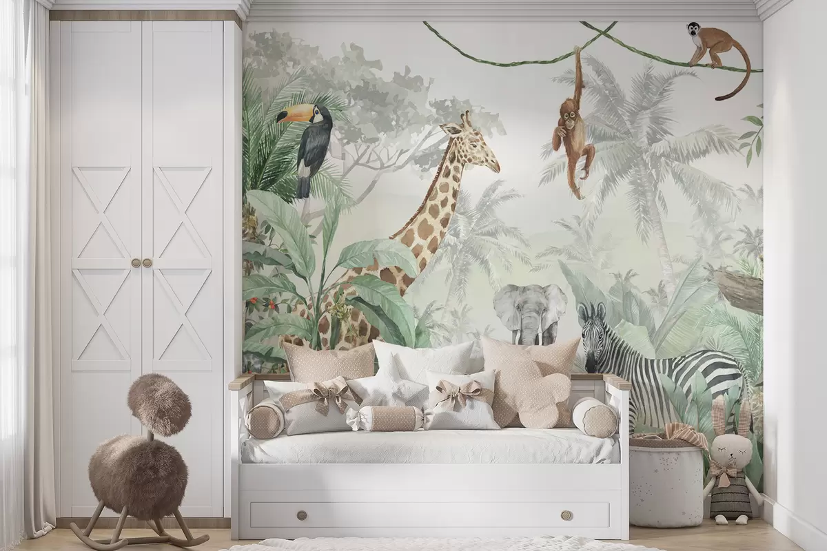 Fototapetai Džiunglių panorama su gyvūnais Nr. u74709
