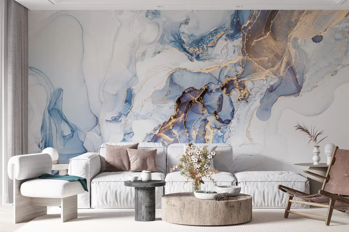 Fototapetai Baltai mėlynas marmuras, skystas Nr. u70767