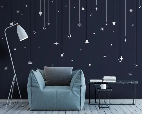 Fototapetai Krintančios žvaigždės Balta spalva, elegantiškas minimalistinis modelis, kosmoso tema Nr. u98767v1