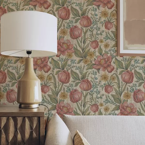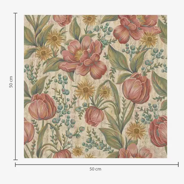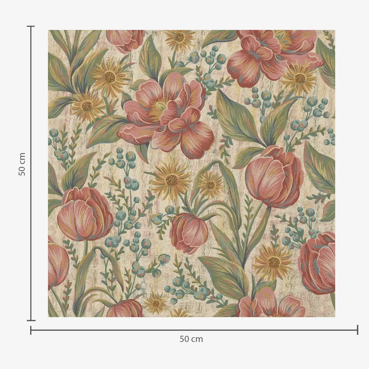 Tapetai Vintage tulipai ir astros, tekstūruotas kreminis fonas Nr. a00773