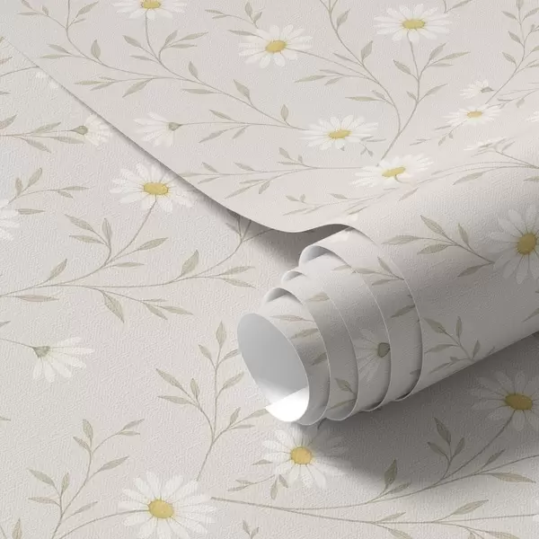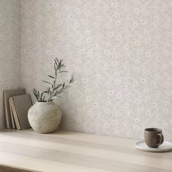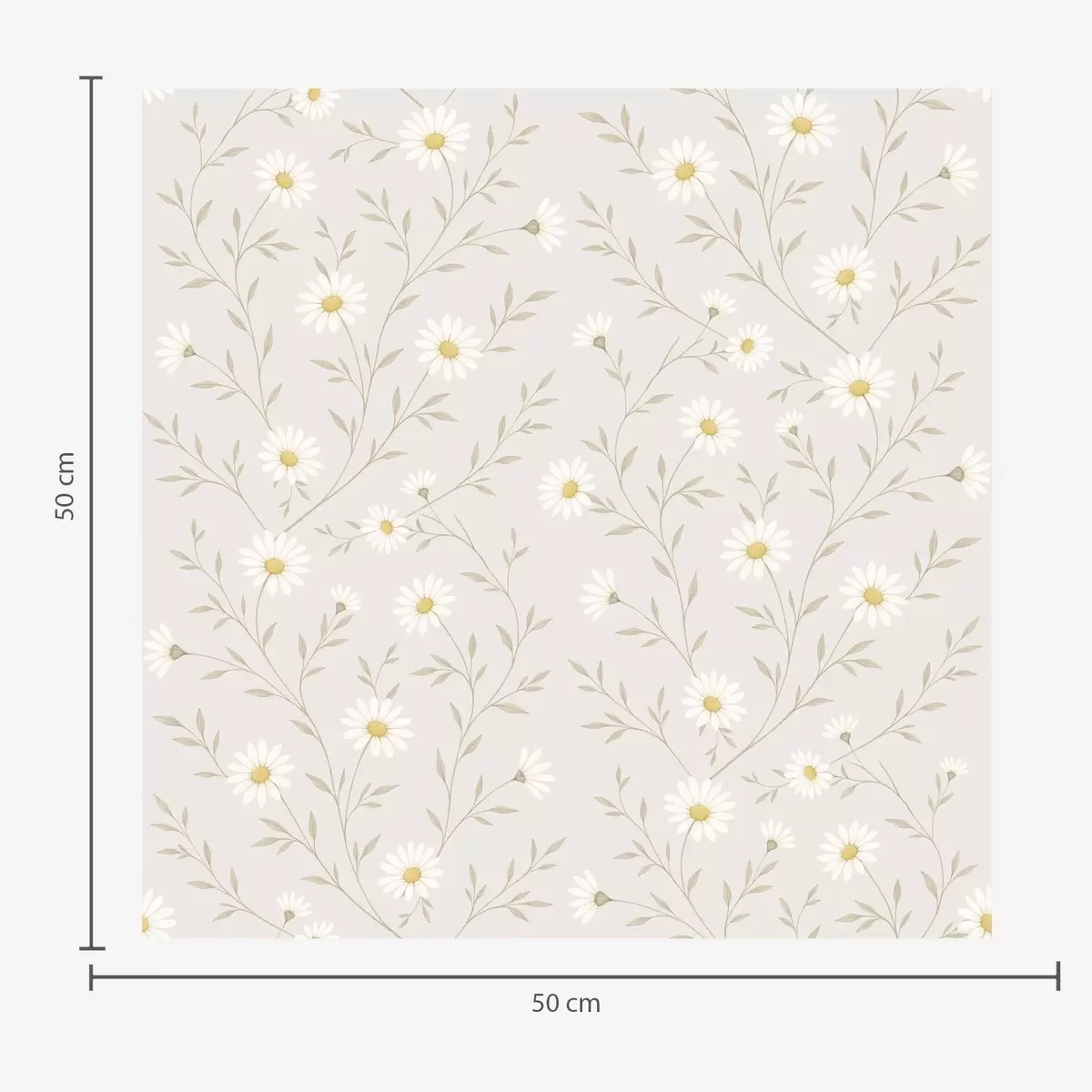 Tapetai Mažos ramunės ant šakelių, šiltos smėlio spalvos Nr. a00777