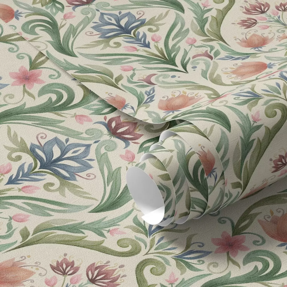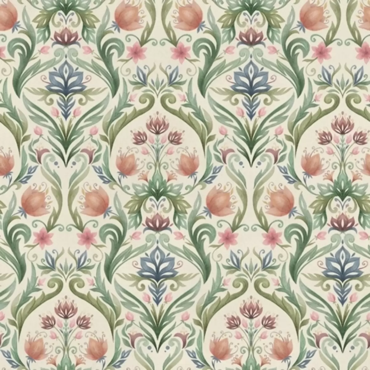 Fototapetai Simetriškas gėlių ornamentas, terakota ir žalia spalva Nr. a00827