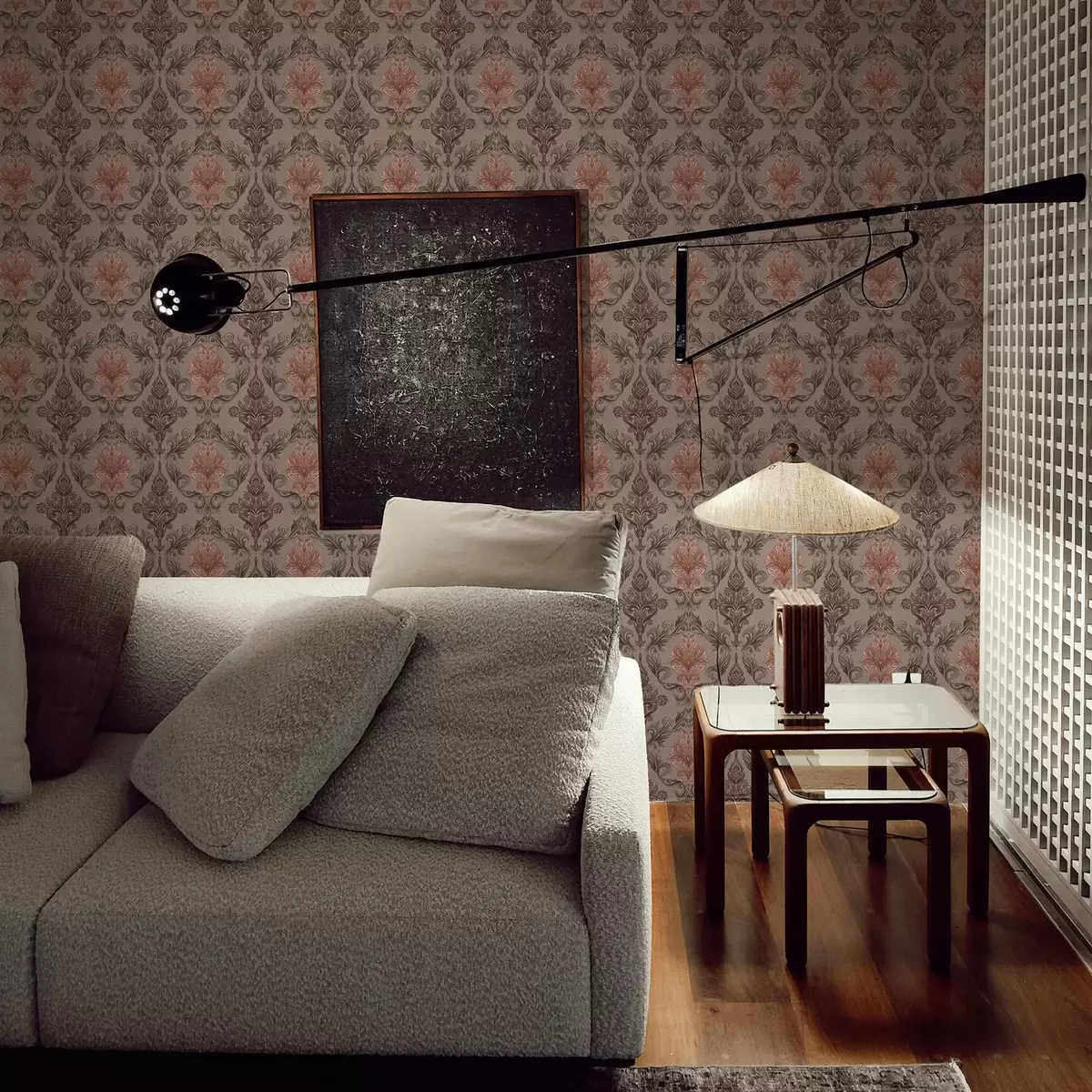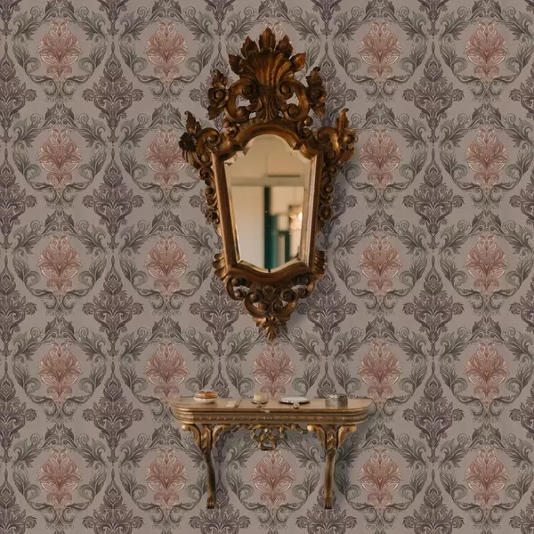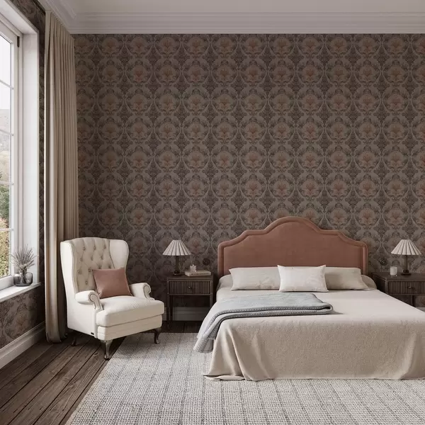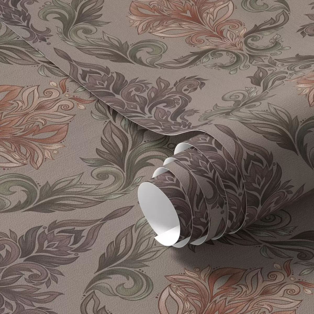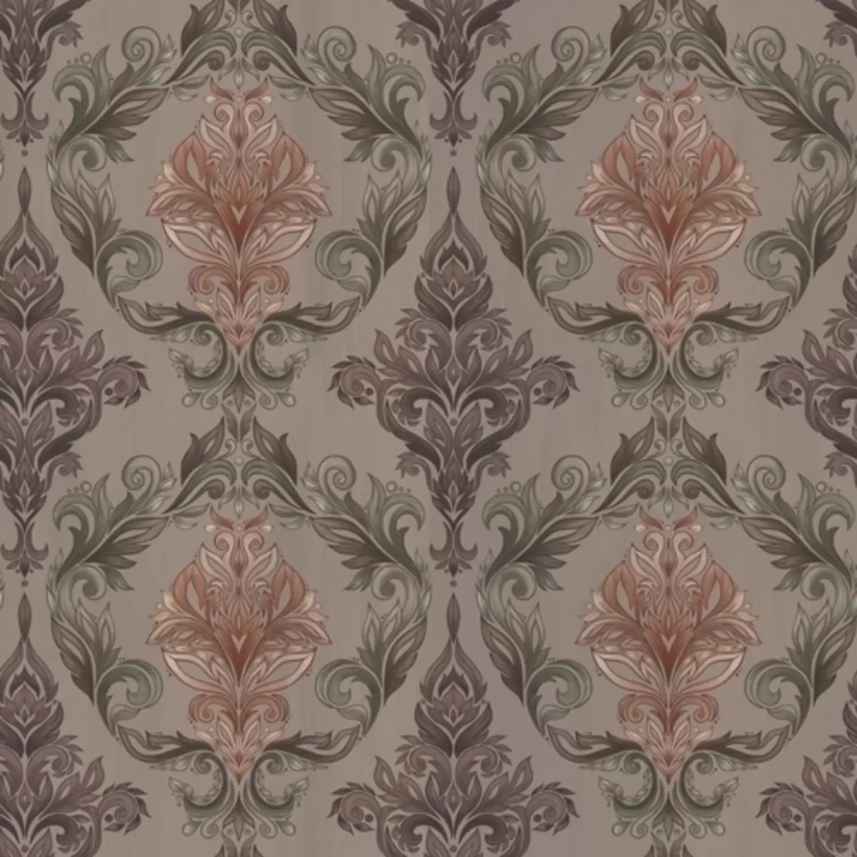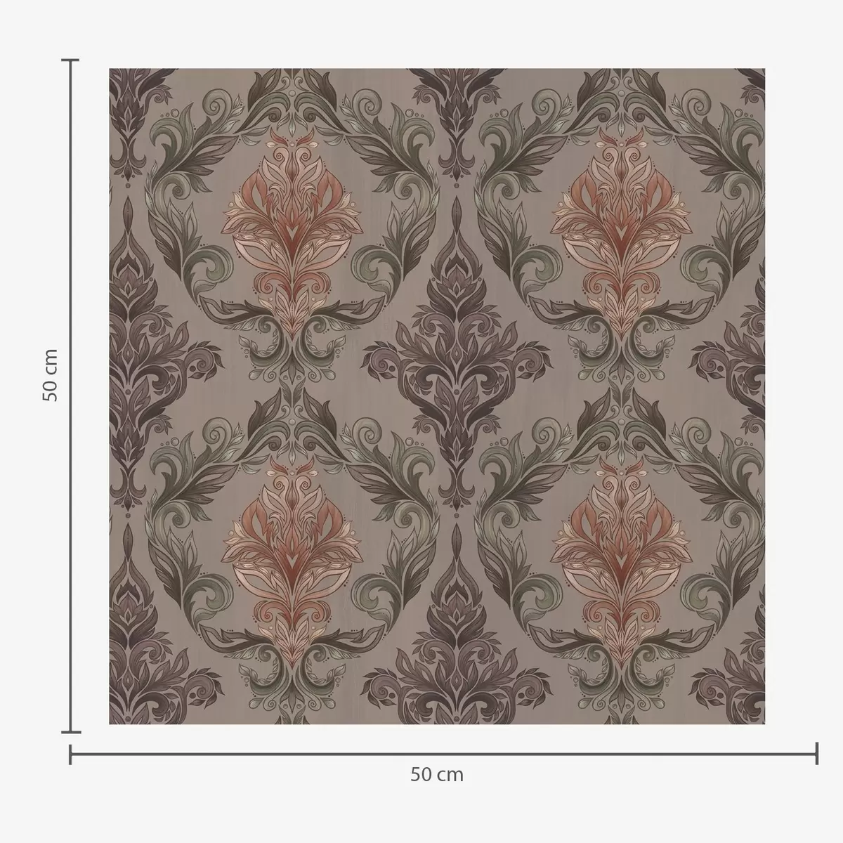 Fototapetai Damaskas rudos-terakotos spalvų paletėje, šiltas pilkas fonas Nr. a00828v2