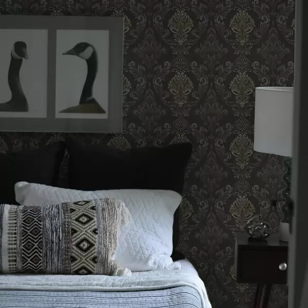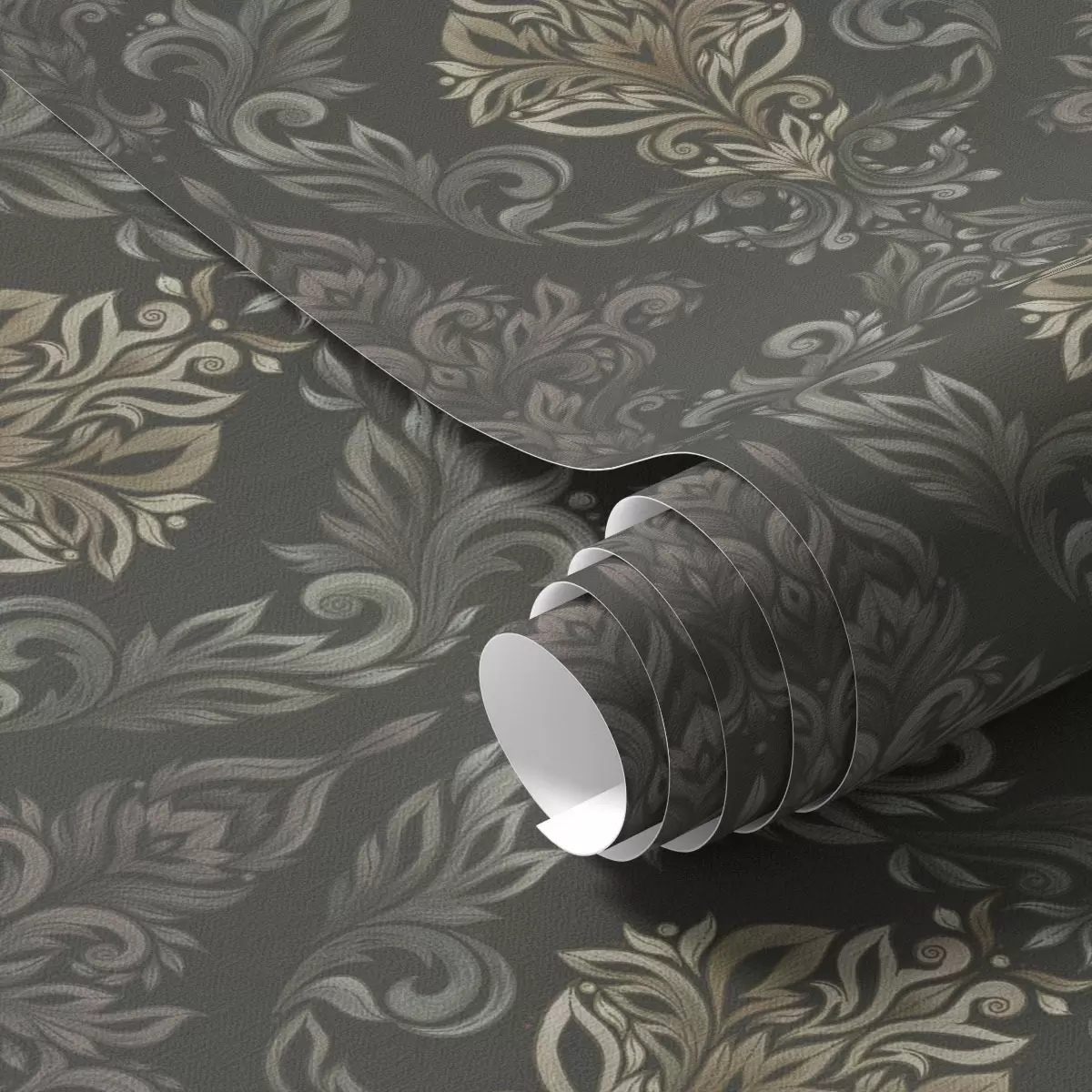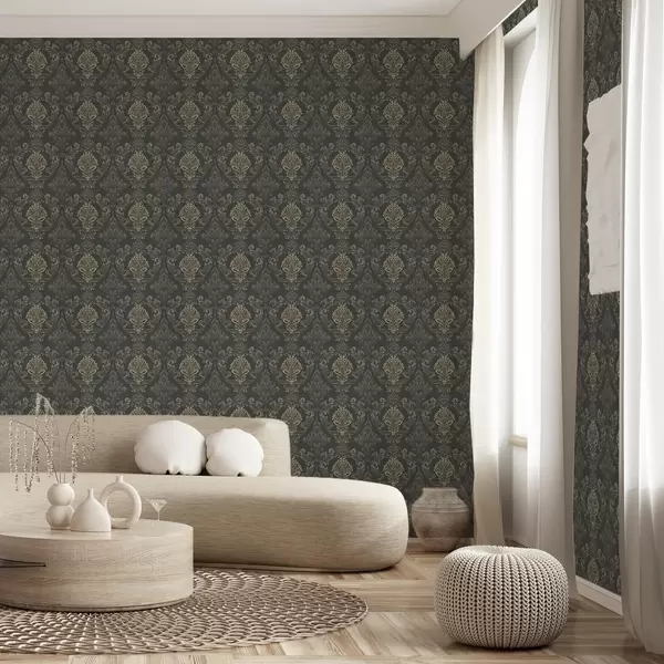 Fototapetai Damaskas ant tamsaus grafito fono, alyvuogių-ochros akcentai Nr. a00828v5
