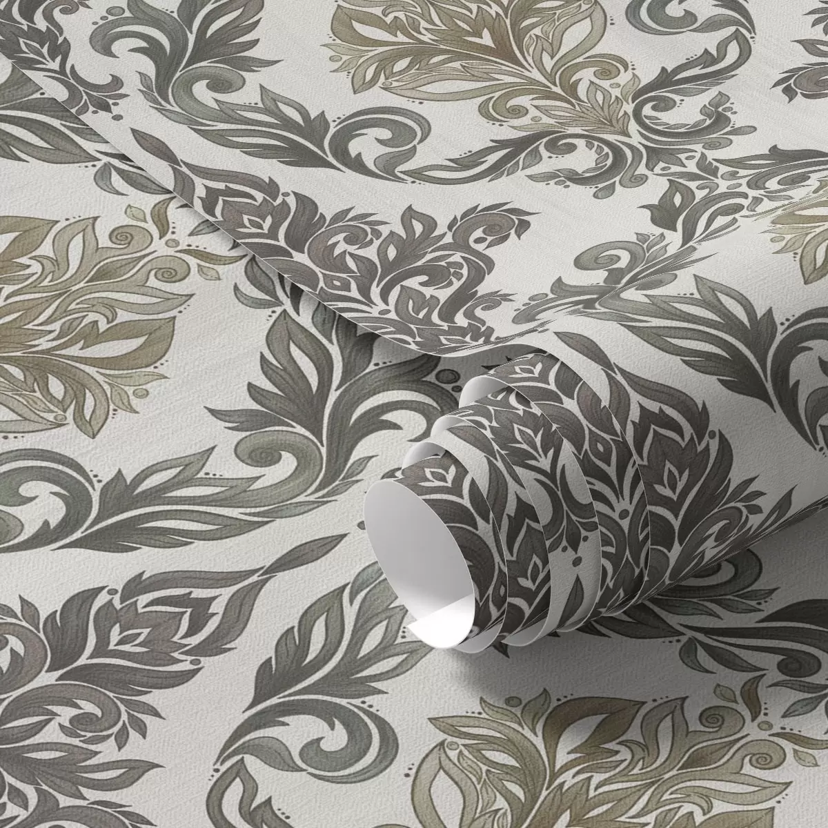 Fototapetai Damaskas ant šviesaus fono, alyvuogių bronzos akcentai Nr. a00828v6