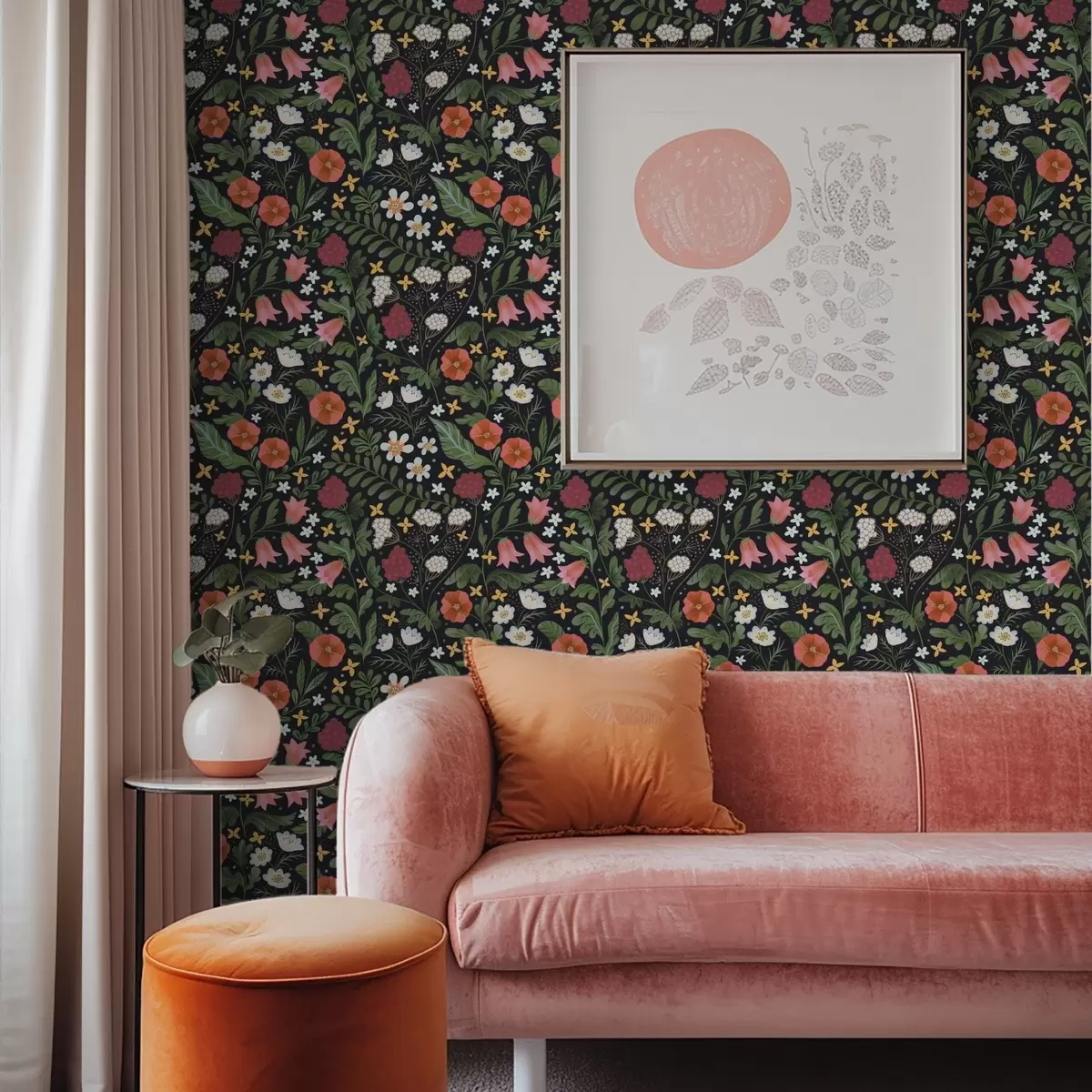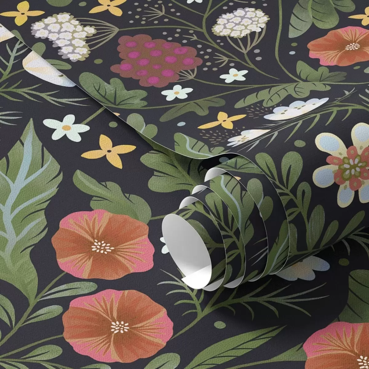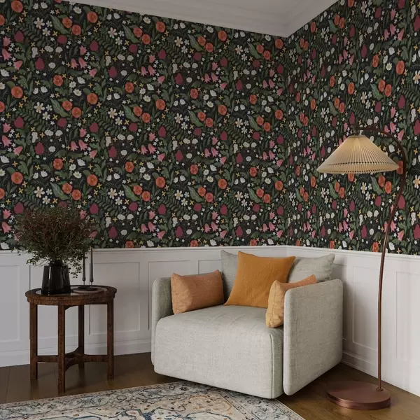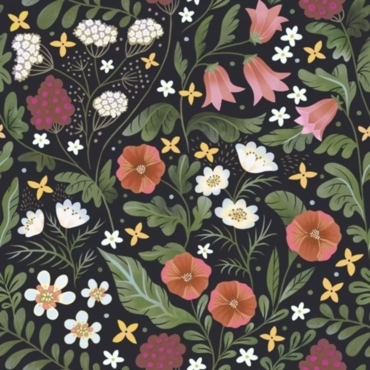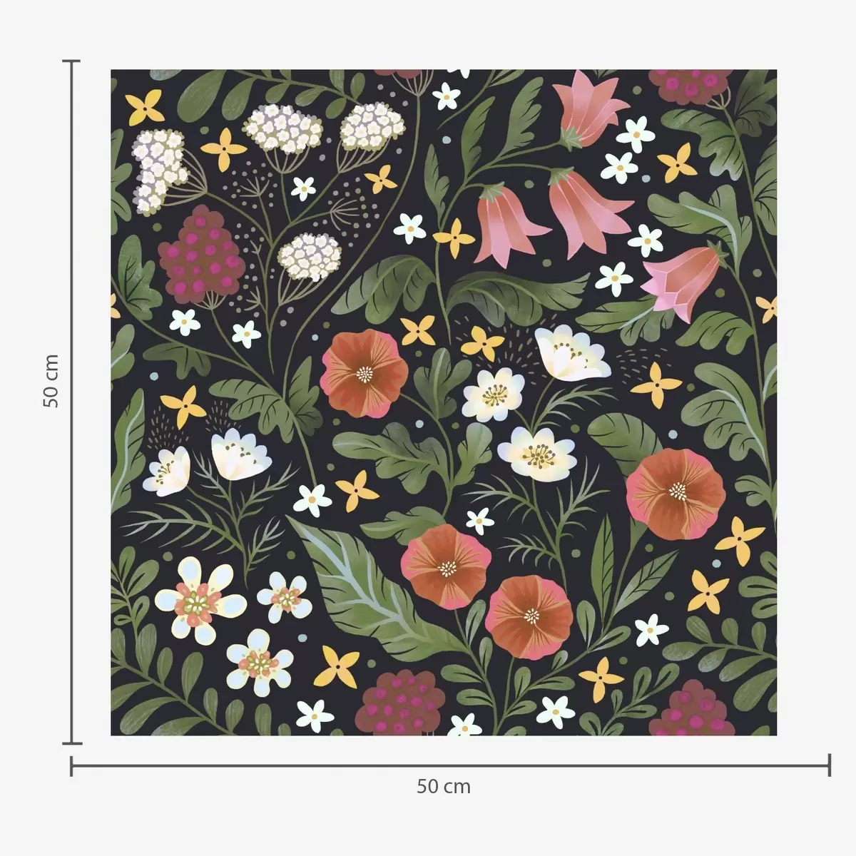Fototapetai Laukinės gėlės ir uogos ant tamsiai juodo fono Nr. a00849v3