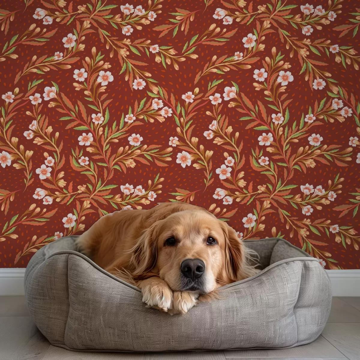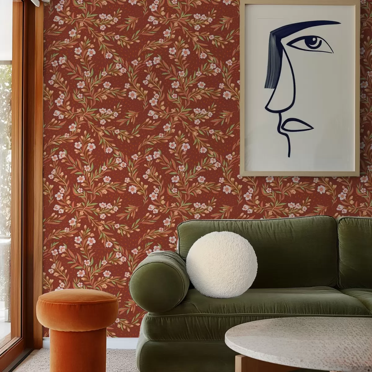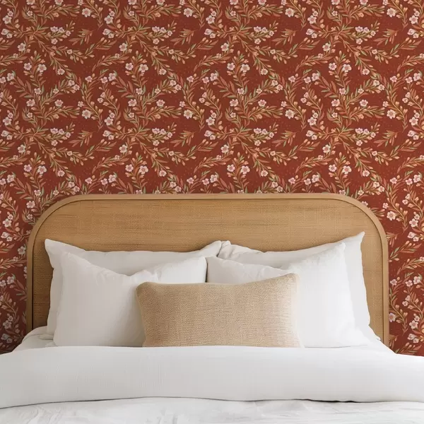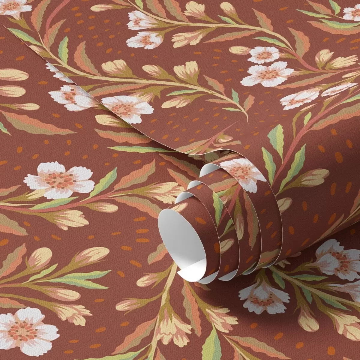 Fototapetai Terakotos fone plaukiojančios šakos su baltomis gėlėmis Nr. a00850v1
