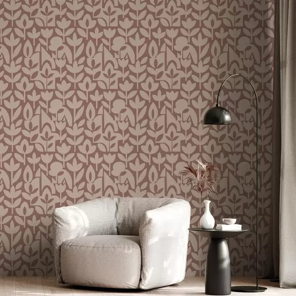 Fototapetai Geometriniai gėlių siluetai terakotos ir kreminės spalvos Nr. a00875v2