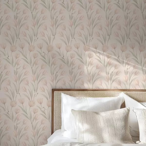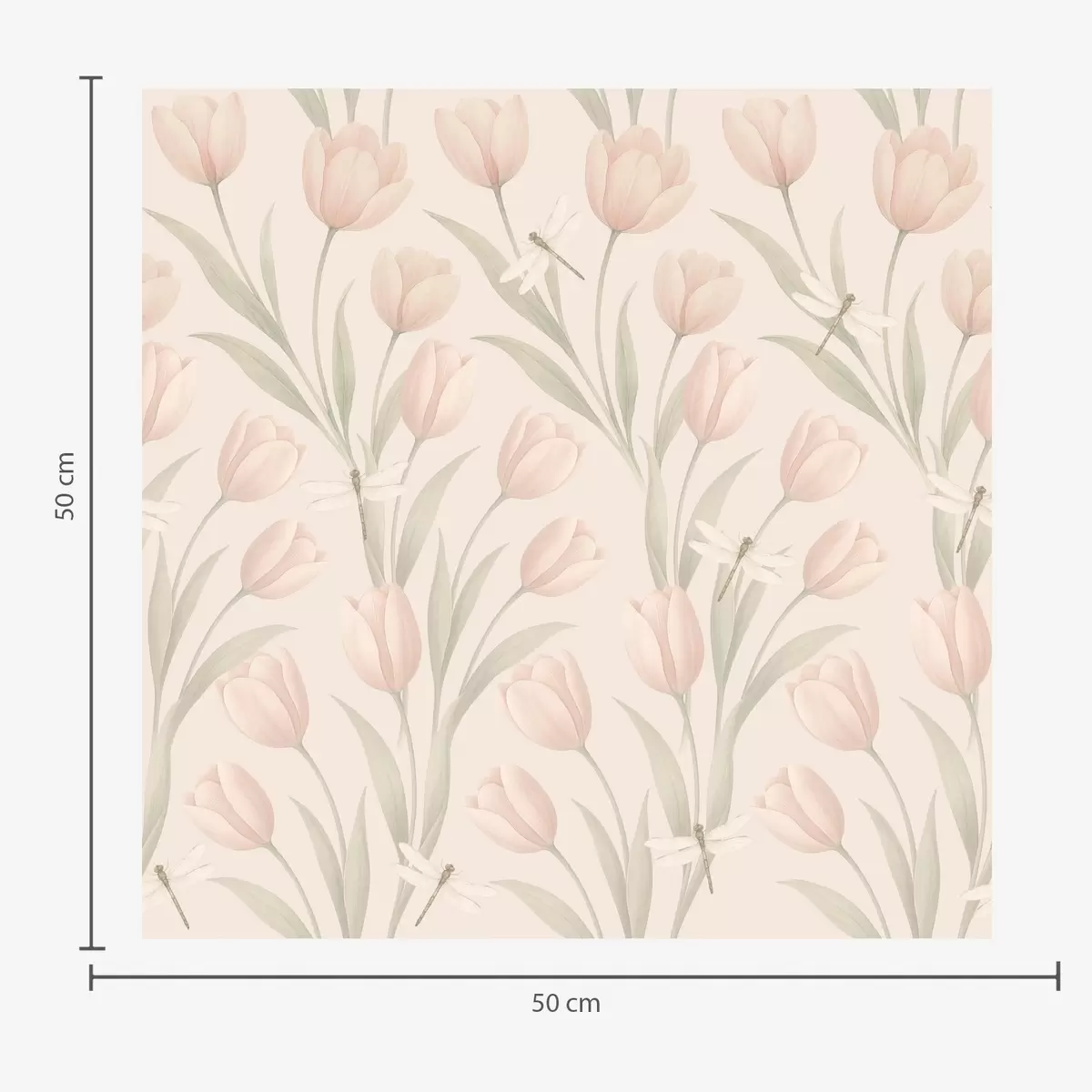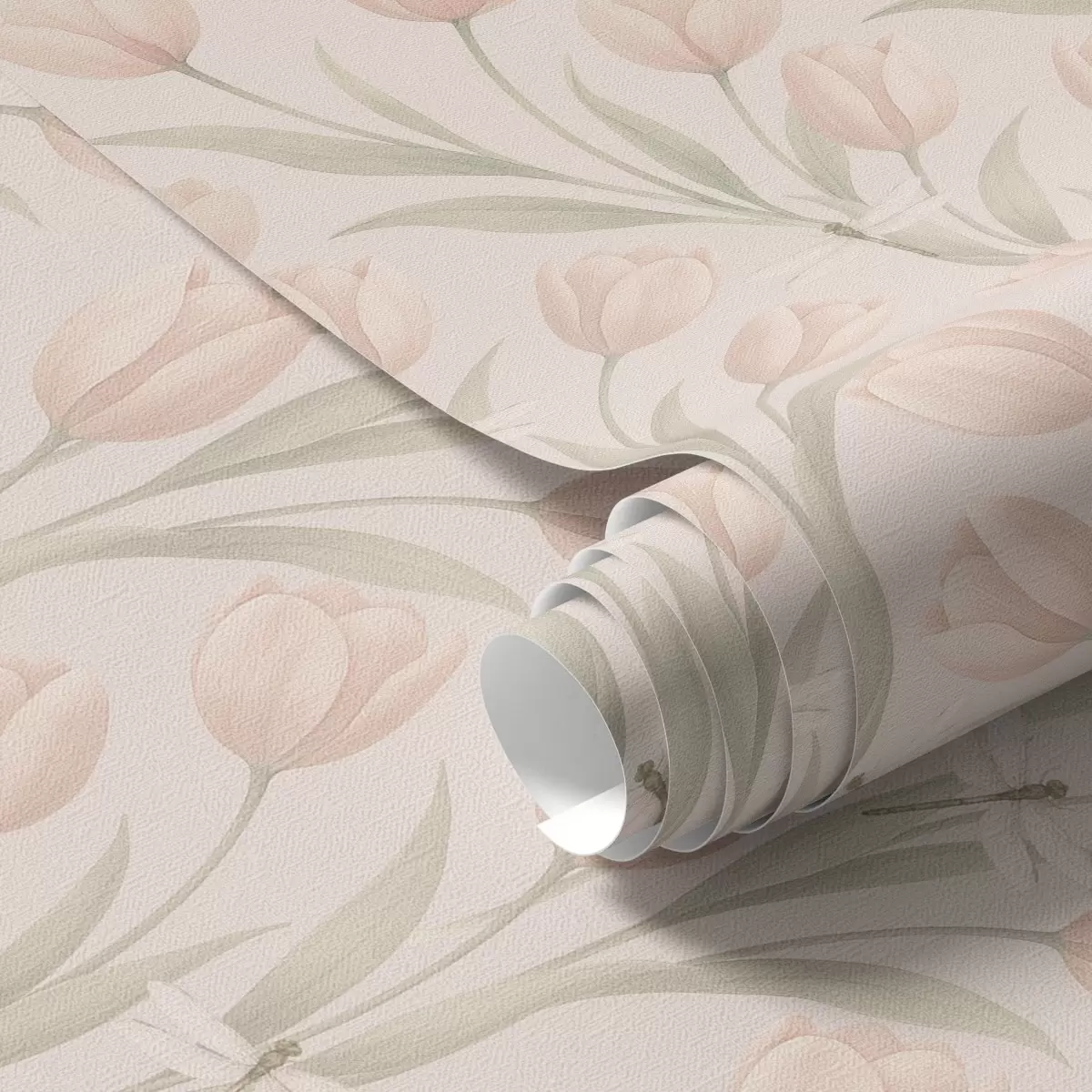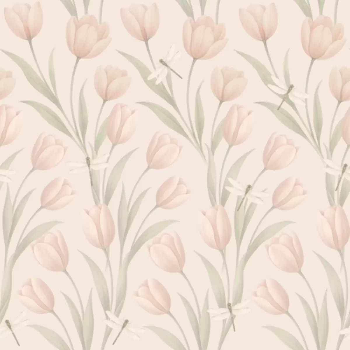 Fototapetai Pastelinės tulpės su drugeliais ant rausvos spalvos fono Nr. a00876